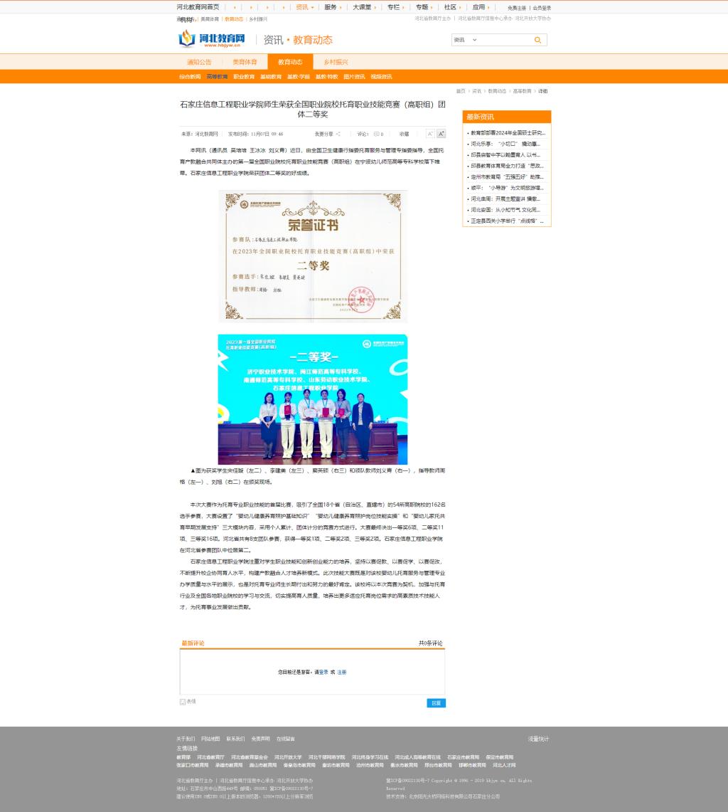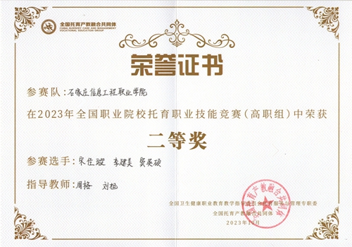 beat365中文官方网站师生荣获全国职业院校托育职业技能竞赛(高职组)团体二等奖