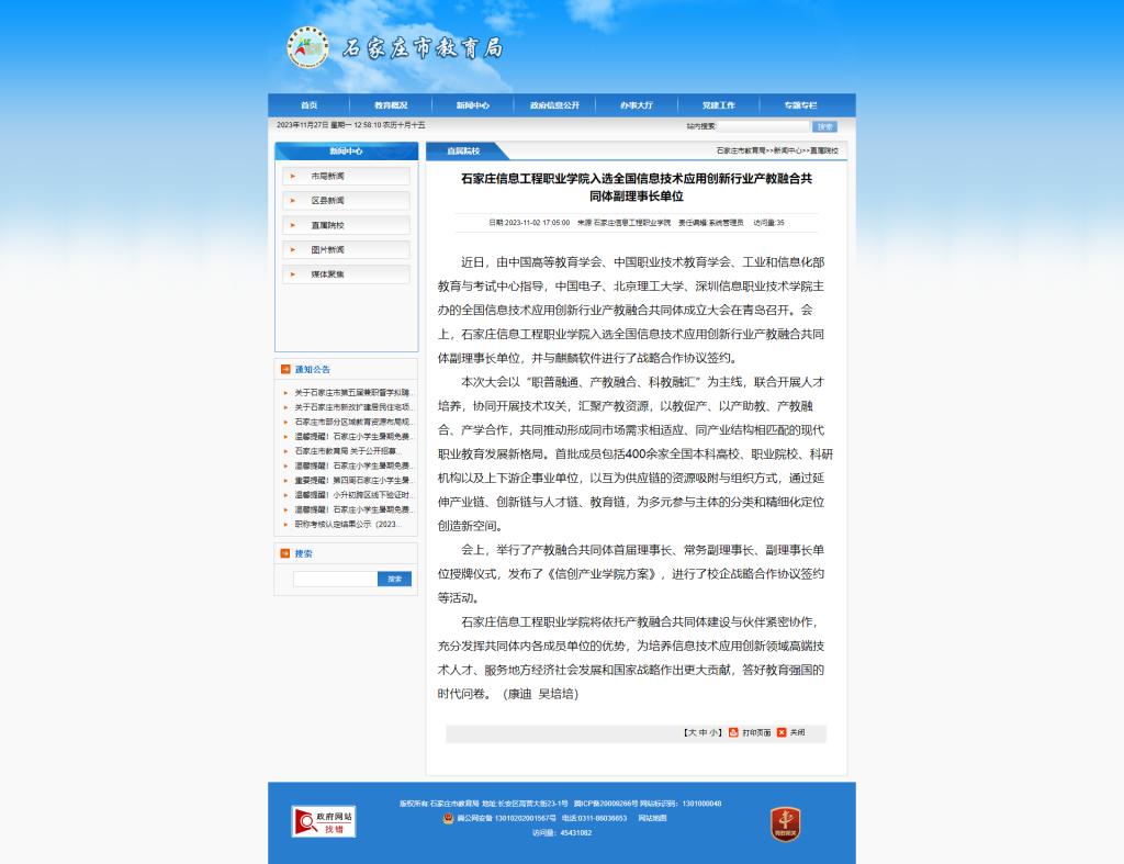 beat365中文官方网站入选全国信息技术应用创新行业产教融合共同体副理事长单位
