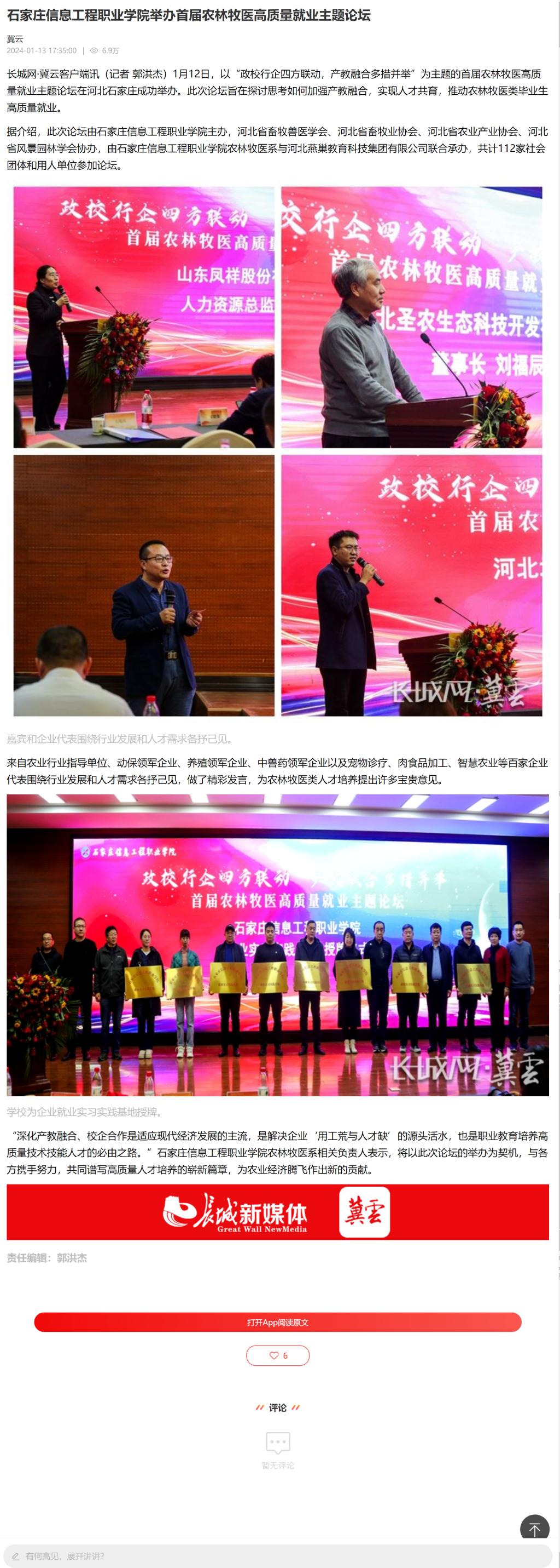 1月12日,以“政校行企四方联动,产教融合多措并举”为主题的首届农林牧医高质量就业主题论坛在河北石家庄成功举办。此次论坛旨在探讨思考如何加强产教融合,实现人才共育,推动农林牧医类毕业生高质量就业。