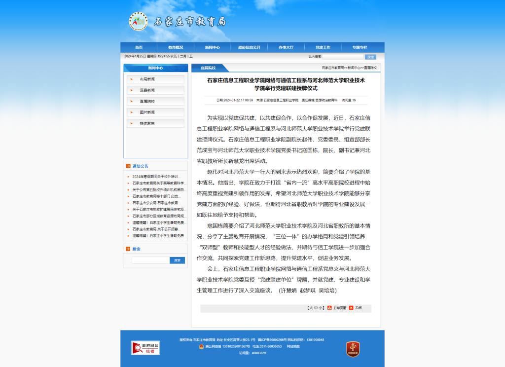 beat365中文官方网站网络与通信工程系与河北师范大学职业技术学院举行党建联建授牌仪式