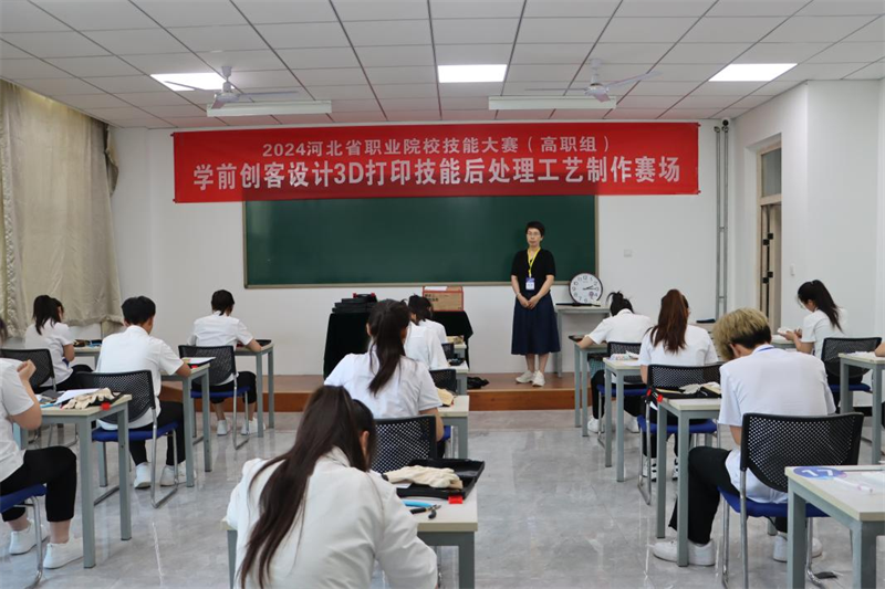 近日,2024年河北省职业院校技能大赛(高职组)学前创客设计3D打印技能赛项在beat365中文官方网站举办,来自全省高职院校的22支队伍同台竞技。