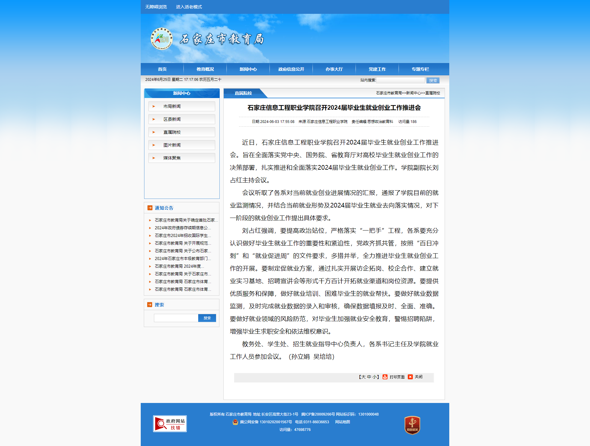 教务处、学生处、招生就业指导中心负责人,各系书记主任及学院就业工作人员参加会议。