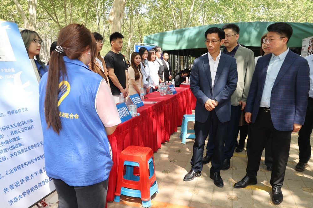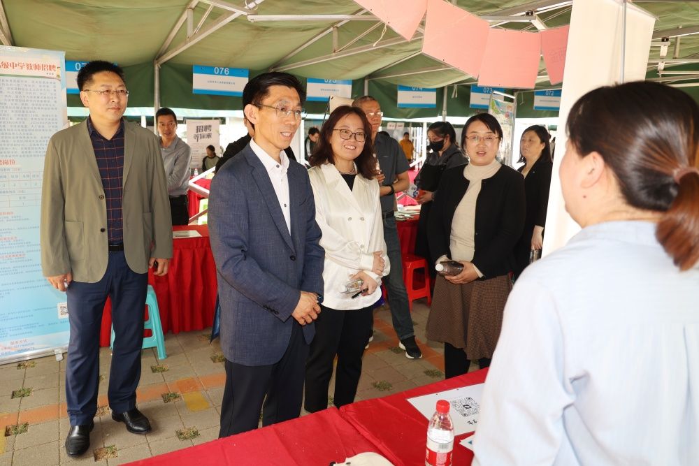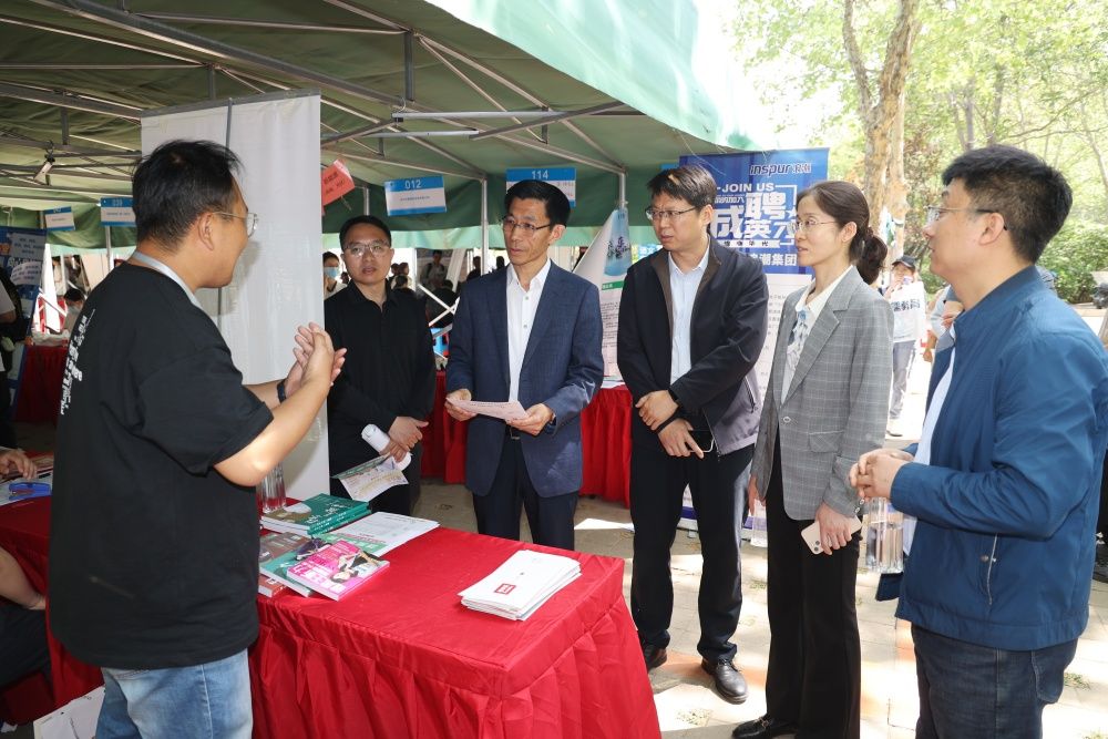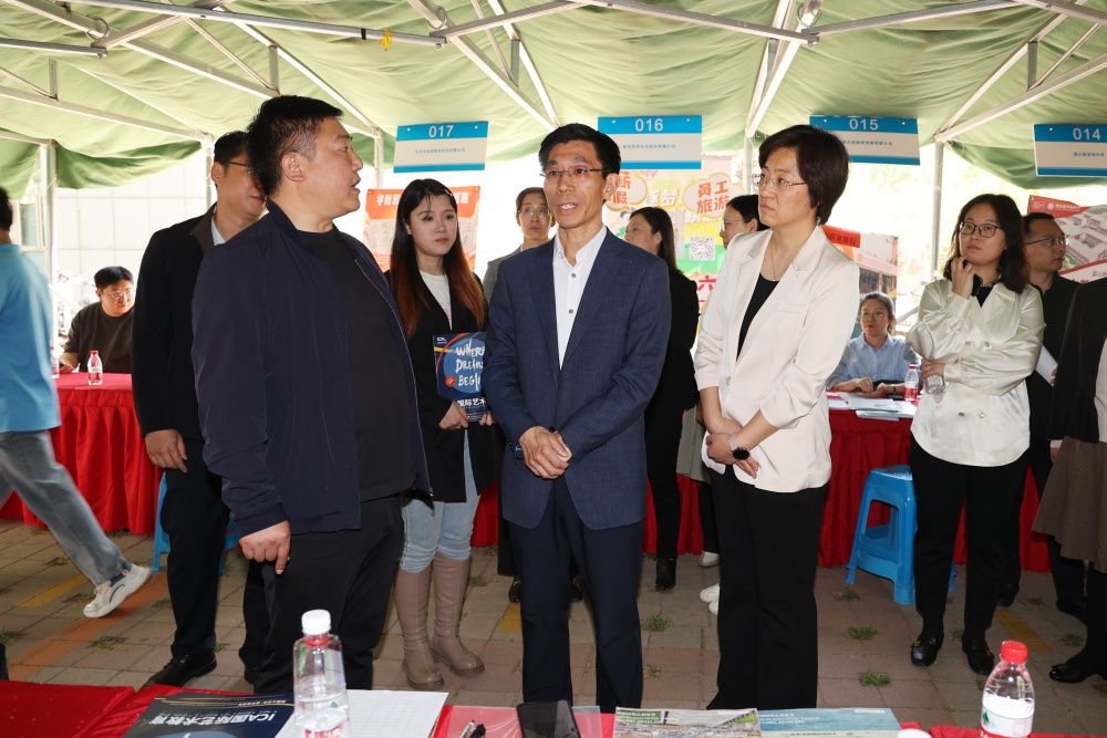 为深入学习贯彻党的二十大精神,落实党中央、国务院“稳就业”“保就业”决策部署,抢抓毕业生求职关键期,为广大毕业生提供广阔的就业平台,有效帮助其更高质量就业,文学院、allwincity万象城、物理科学与技术学院、外国语学院于4月18日上午联合举办“文物双全,数语未来”2024年春季专场招聘会。学校党委常委、副校长李强到场与参会单位和学生交流。党委学生工作部(处)、团委 创新创业学院、文学院、allwincity万象城、物理科学与技术学院、外国语学院等相关负责人参加活动。