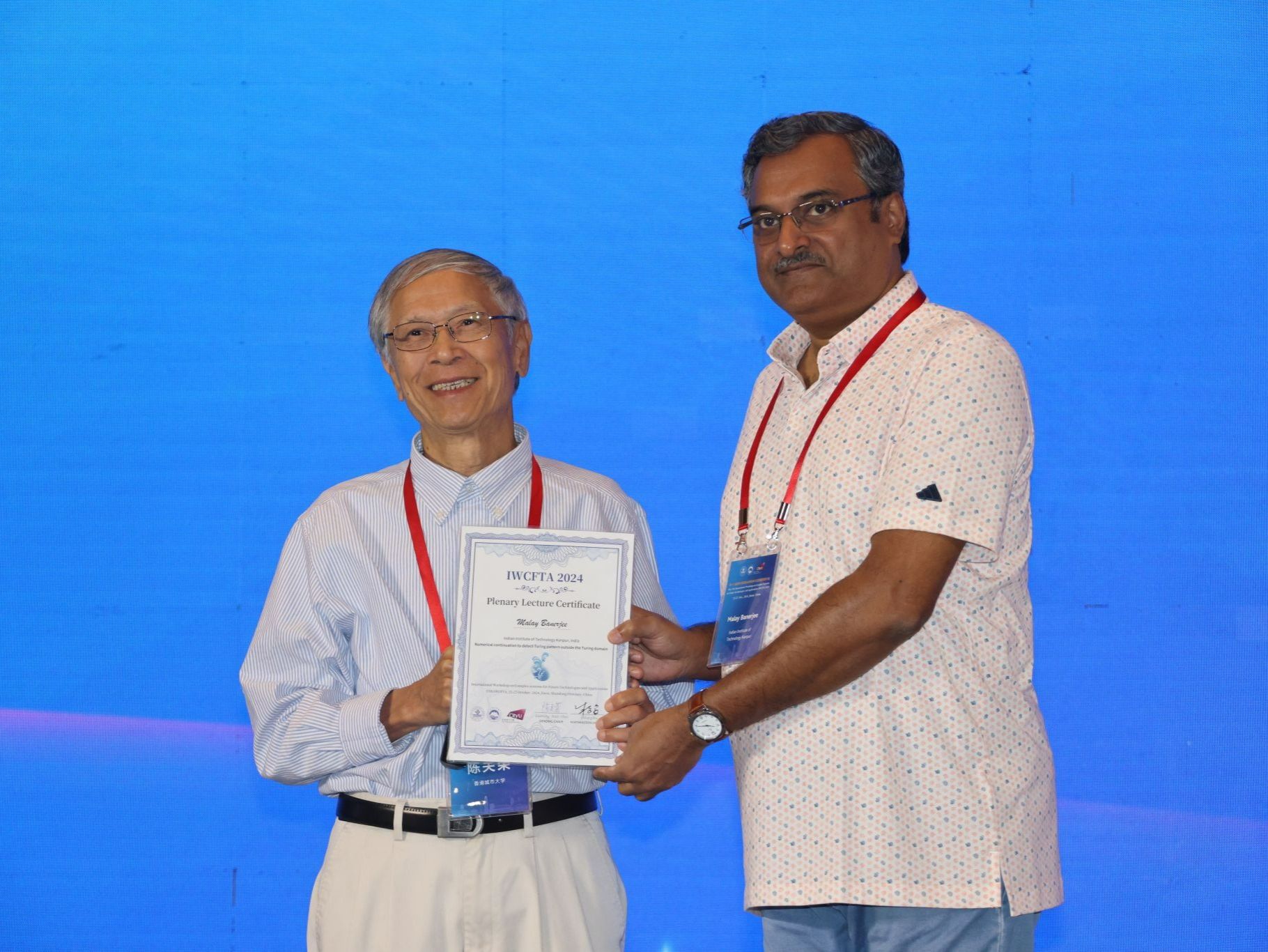 本次会议分为8个大会主旨报告和10个分会场报告两部分。共收到论文总数 130余篇,到会报告交流论文115篇。主旨报告中,意大利国家科学院复杂系统研究所、欧洲科学院院士斯特凡诺·博卡莱蒂(Stefano Boccaletti)教授作题为“网络化动力系统向同步化的转换(The transition to synchronization of networked dynamical systems)”的报告;印度坎普尔理工学院马来•班纳吉(Malay Banerjee)教授作题为“图灵域外检测图灵模式的数值延拓(Numerical continuation to detect Turing pattern outside the Turing domain)”的报告;中国香港城市大学协理副校长谢智刚教授以“面向更绿色未来的演变电网(The evolving power grid towards a greener future)”为题讨论了电力电子系统渗透到电网中的各种电路和系统问题及对电网持续演变的影响;加拿大滑铁卢大学刘新芝教授分享了在领导者—跟随者时滞多智能体系统的共识混合协议时间延迟方面的观点;北京航空航天大学副校长吕金虎教授通过线上的形式与大家讨论群体智能感知和协同控制的新进展相关的问题;西南大学的王丽丹教授作题为“类脑计算与智能控制(In-memory computing memristor device and its AI accelerators)”的报告;电子科技大学卢多维科·米纳蒂(Ludovico Minati)教授作题为“跨越神经元与硅:关于异常电子电路与神经科学之间关系的一些思考(Across neurons and silicon: some ideas about the relationship between unusual electronic circuits and neuroscience)”的报告;广东工业大学的禹思敏教授与大家共同探讨了混沌密码的分析与设计问题。