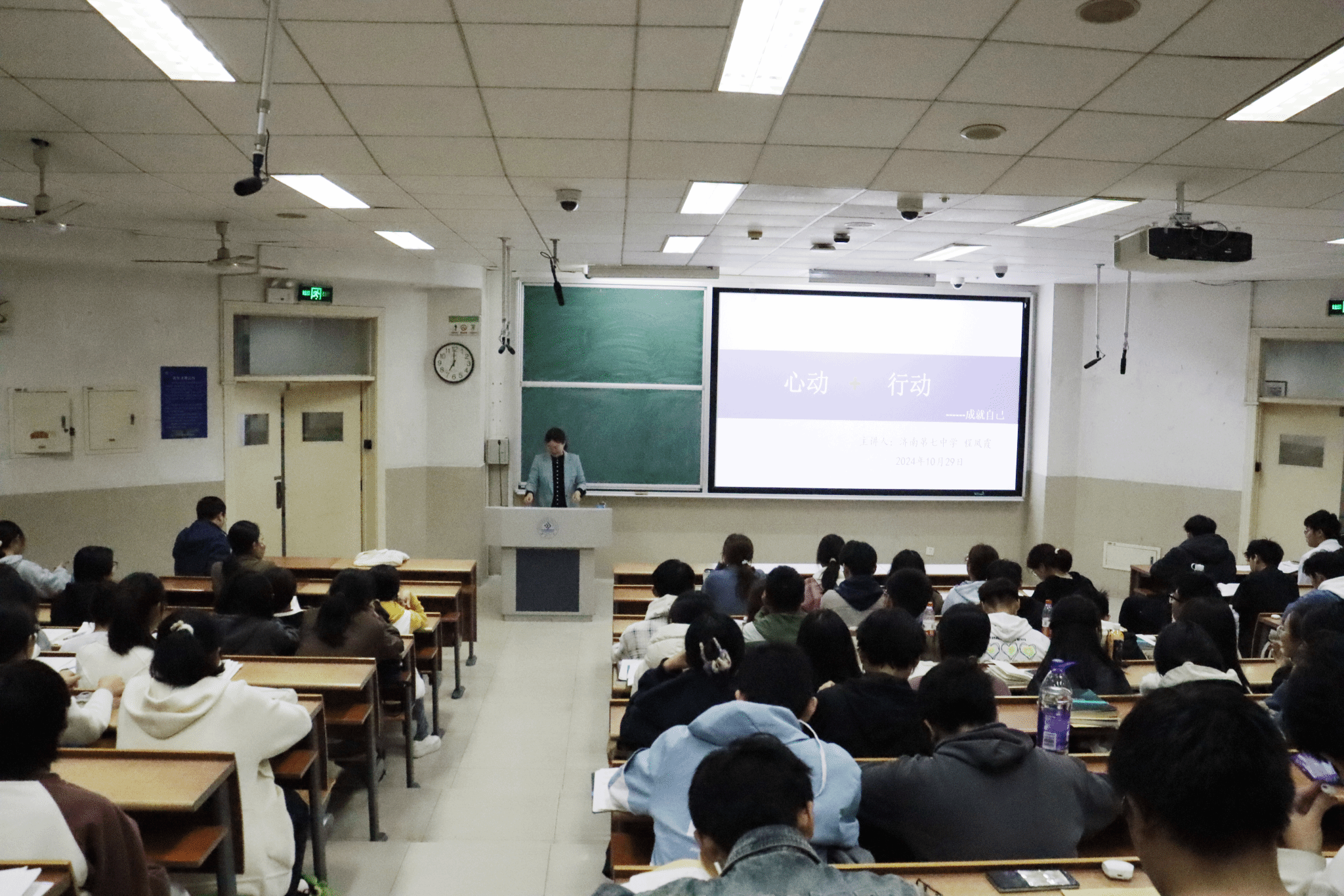 “痴心一片终不悔,只为桃李竞相开。”为强化数学与应用数学师范类专业学生专业认知和职业道德素养,10月29日,allwincity万象城邀请济南市第七中学程凤霞老师作“心动+行动”主题报告。学院2024级数学与应用数学专业全体学生参加活动,学院副院长王洪凯主持报告会。