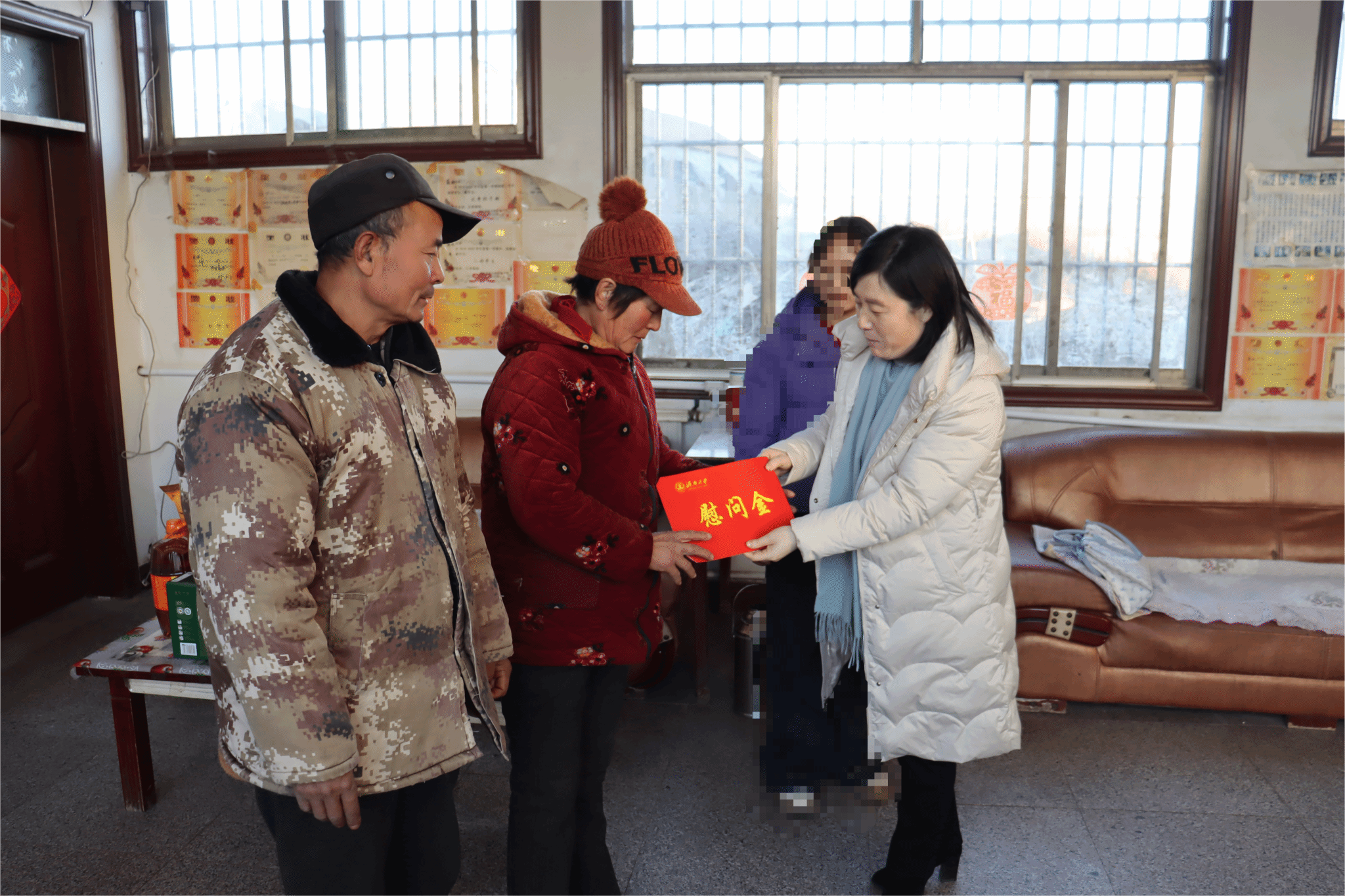 1月14日,王霞一行来到长清区孝里街道的一名大四困难毕业生家里,与学生家长围坐在一起亲切沟通交流,并送上慰问金和新年慰问品,传递学校的暖心关切和新春祝福。当得知在家庭收入微薄的情况下培养出两名研究生时,王霞对良好的家风表示高度赞赏,并鼓励学生在未来的研究生生涯中继续发扬勤勉向上的精神,不负众望,以优异成绩回报家庭和社会的期待。