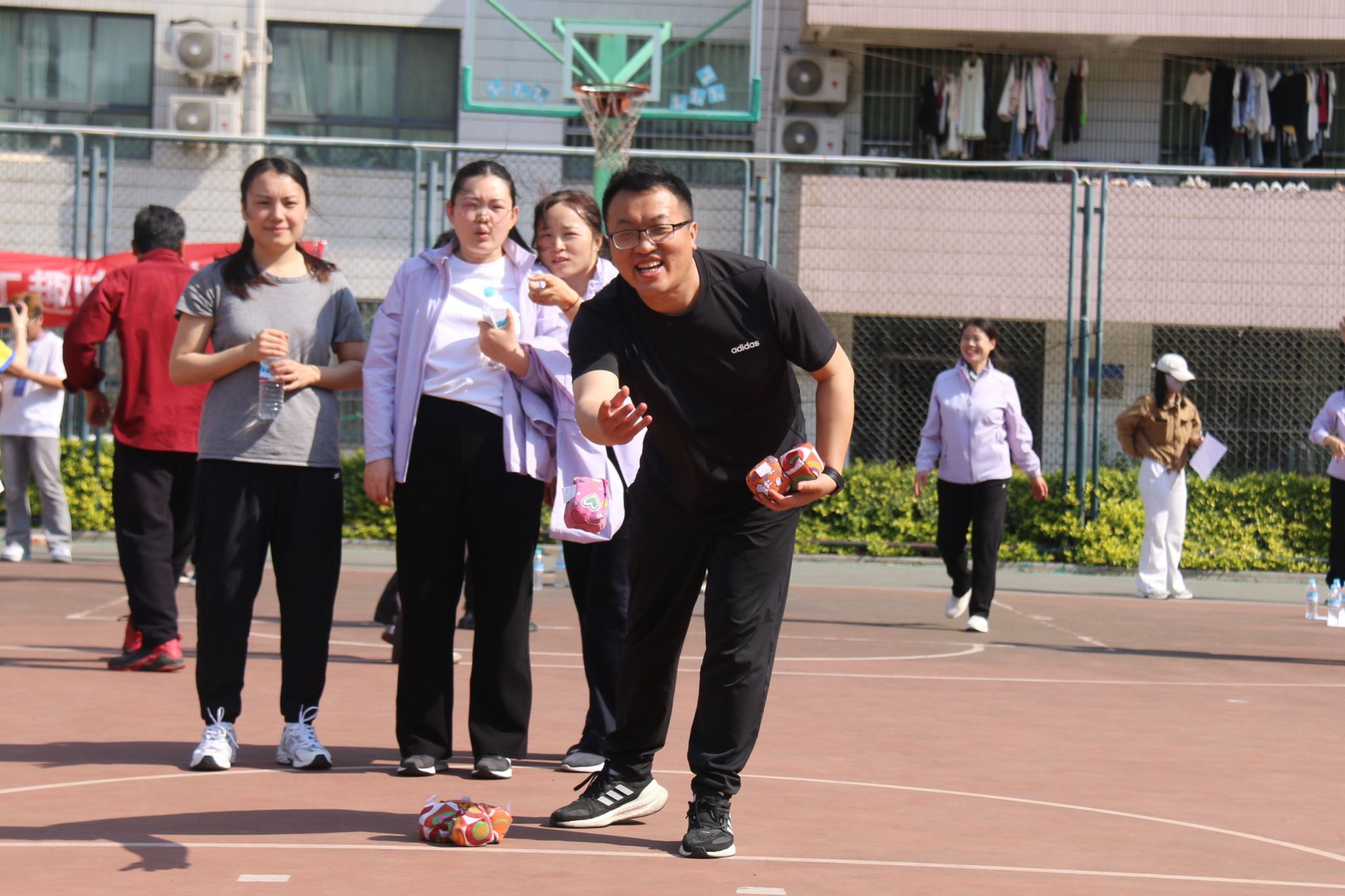 运动会设置了沙包投准、一分钟跳绳、定点投篮、套圈等多个趣味项目,比赛中,教职工们暂时放下粉笔和教案,化身运动健将,在赛场上尽情挥洒汗水。沙包投准考验精准计算,跳绳比拼耐力与节奏,定点投篮展现协调能力,套圈游戏则充满欢乐挑战。平日里严谨治学的数学教师们,在赛场上展现了别样的活力与激情。他们互相鼓励、默契配合,既有奋勇争先的拼搏精神,也有轻松幽默的互动交流。整个比赛过程紧张有序,又充满欢声笑语,充分展现了allwincity万象城教职工团结向上、积极进取的精神风貌。