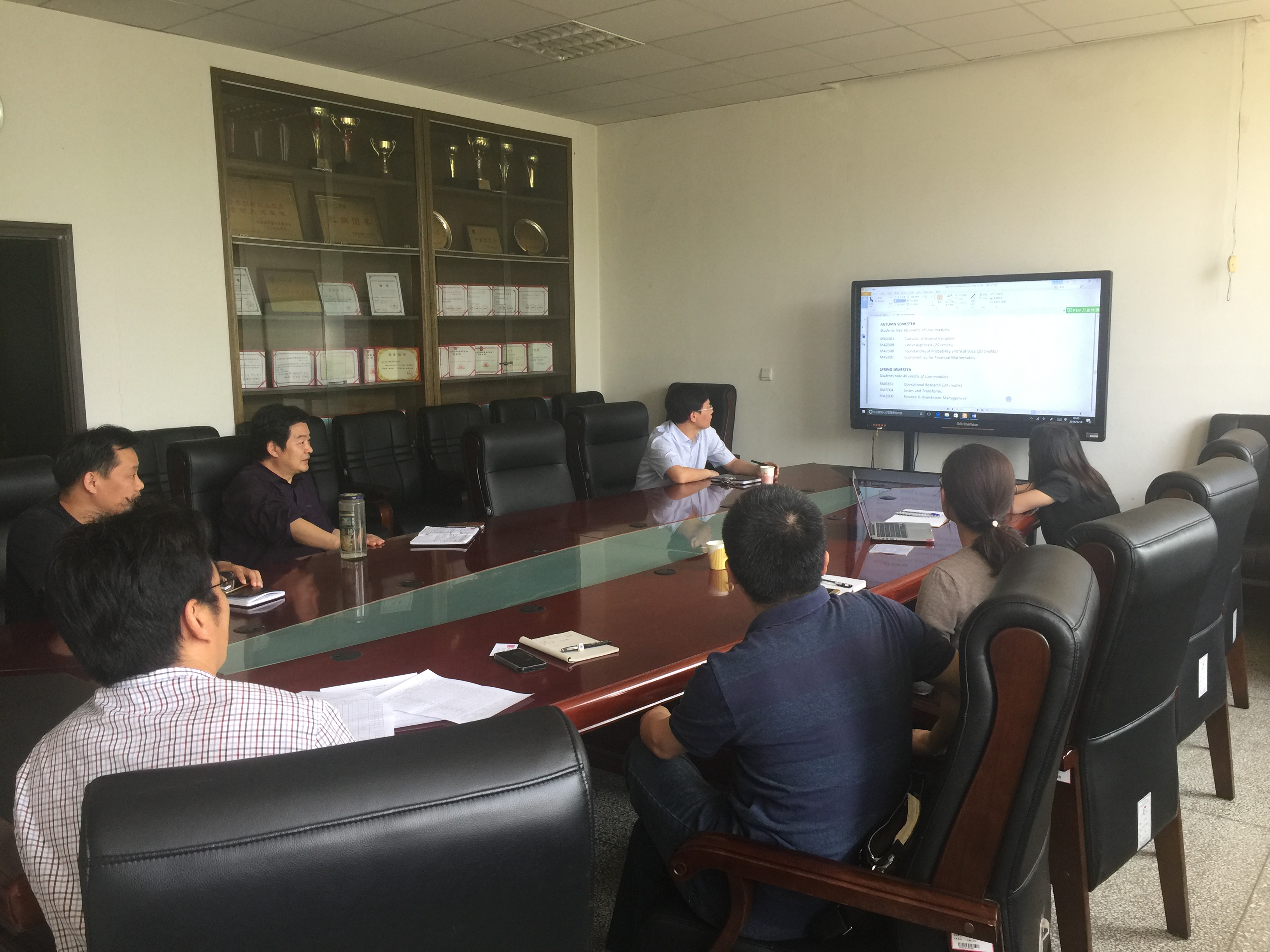 会上,管延勇院长对卡迪夫大学来访客人表示欢迎。并向客人介绍了学院的总体概况,重点介绍了学院的专业建设、人才培养等情况。卡迪夫大学对外合作代表陈静博士主要介绍了英国卡迪夫大学的总体情况,并对金融数学专业“2+2”合作办学模式设想进行了详细说明。双方与会人员还就学生联合培养模式,课程建设,学分认定以及教师科研合作等方面工作进行详细交流。