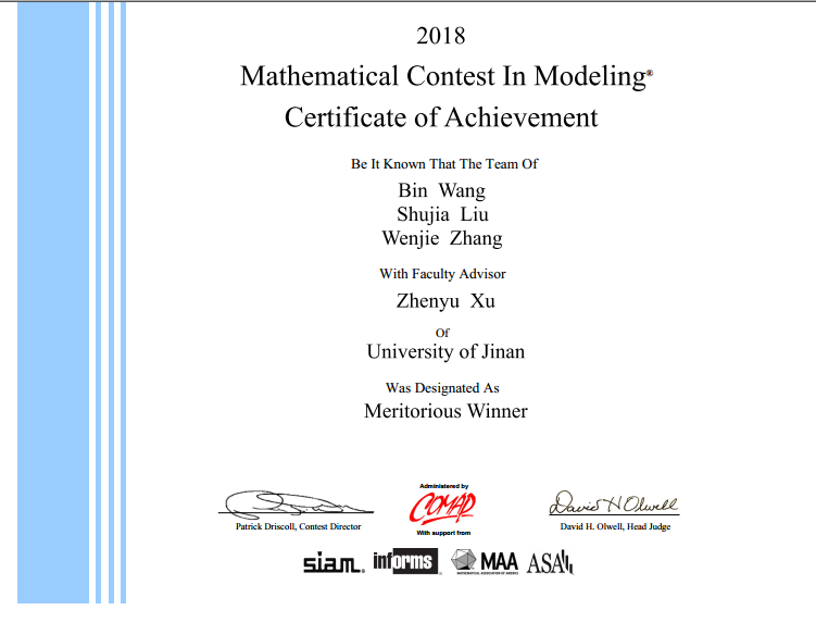 美国数学建模竞赛是一项国际大学生数学建模竞赛,该竞赛从问题到解答全部使用英语,对参赛学生是一个很大的挑战,既锻炼了学生分析和解决问题的能力,又增强了学生团队协作能力,开阔了学生的国际视野。参加该竞赛的高校有哈佛大学、普林斯顿大学、麻省理工学院、清华大学、北京大学、南京大学、浙江大学、复旦大学等国内外著名高校。