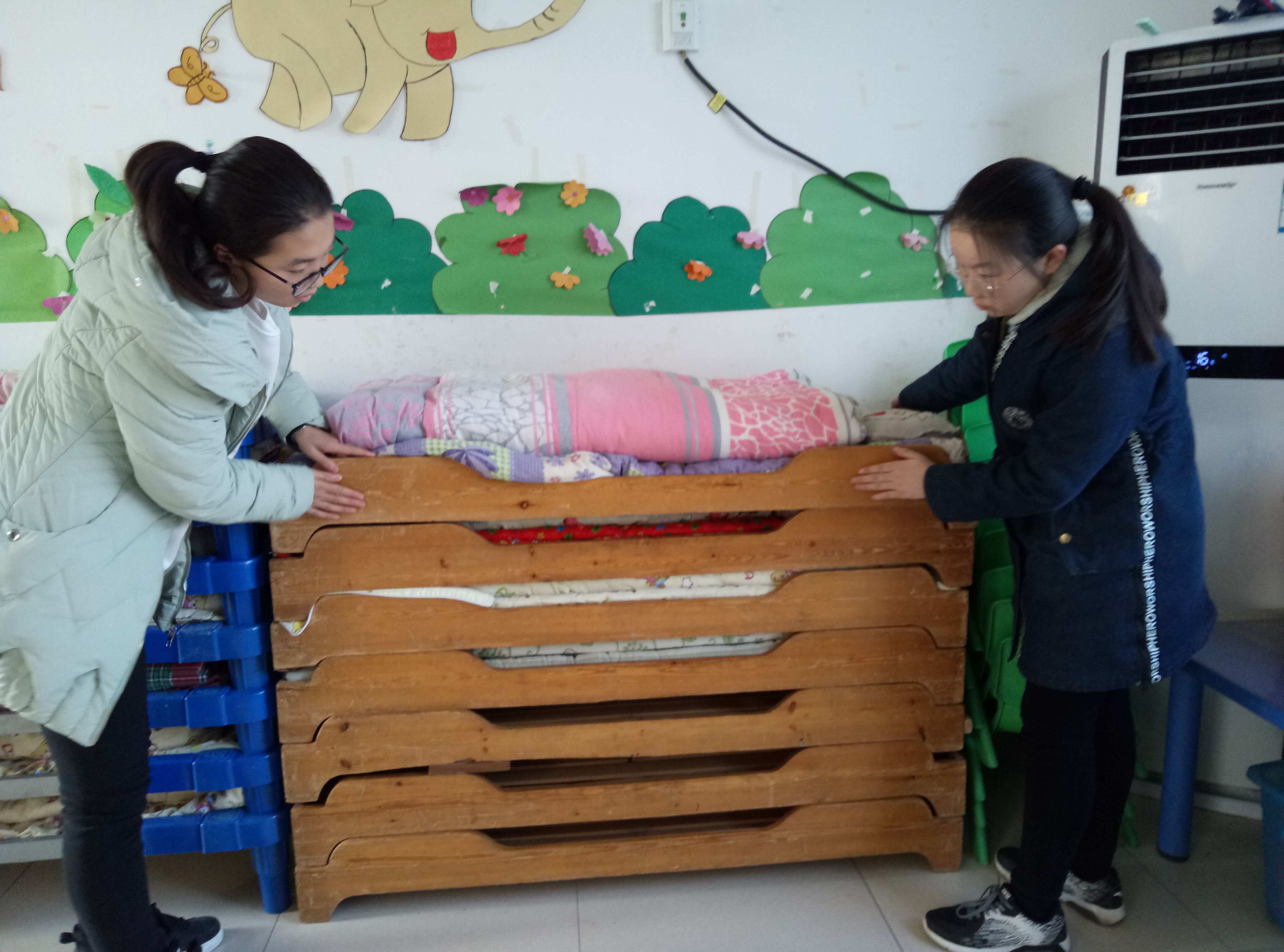 服务队刚来到后魏村幼儿园时,孩子们正在熟睡,在等待孩子们睡醒的期间,老师们给志愿者安排好了活动任务。活动伊始,志愿者们来到孩子们的教室,摆放好孩子们上课时用的桌椅,并且清理了桌面的垃圾,在他们的努力下,教室变得更加整洁敞亮。耐心得待到孩子们午休完毕,志愿者们来到孩子们的卧室,帮助孩子们穿上衣服和鞋子,整理床被,并把床排列整齐,重新摆放上干净整齐的桌椅。志愿者们做完这些工作后还陪同孩子们上楼去吃点心,和他们开心的交流玩耍。老师最后带领孩子们在院子里做游戏,志愿者们也都加入到游戏的行列中来,孩子们个个都积极踊跃参加,大家都玩得很尽兴,在他们的脸上都洋溢着快乐和幸福。志愿活动随着游戏的结束而结束了,志愿者们表示这样的活动很有意义,以后会常来参加。