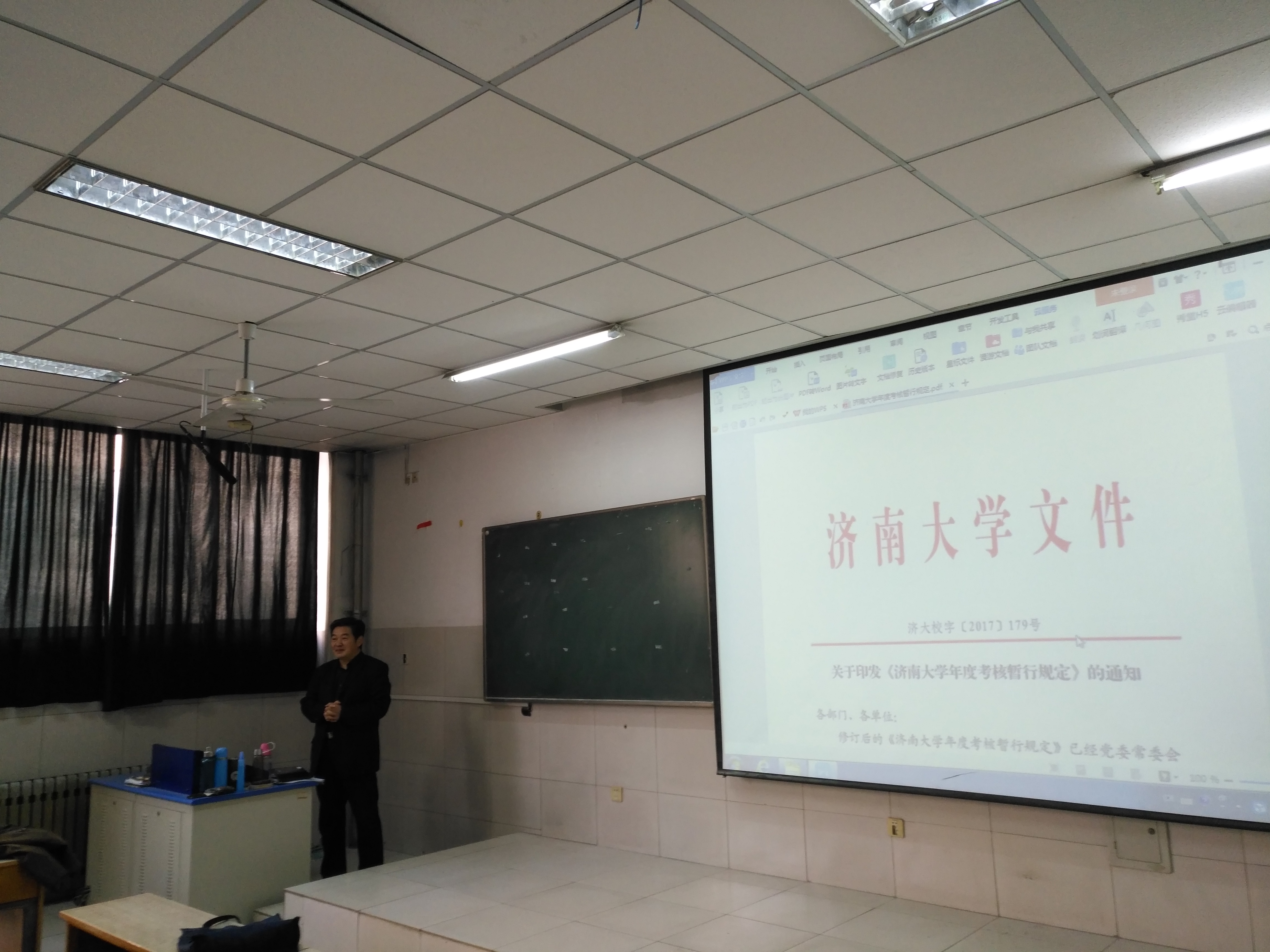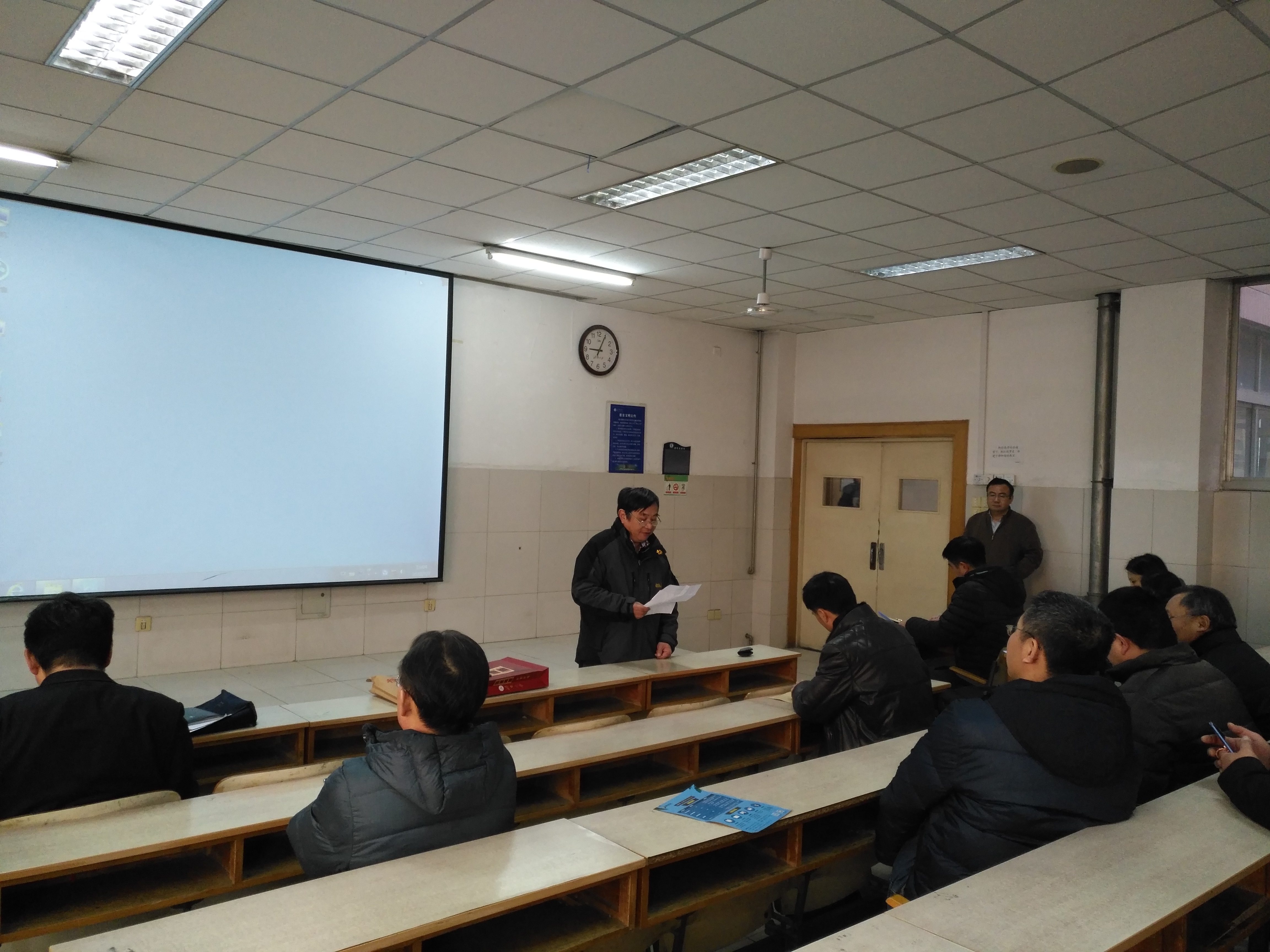 会上,学校相关职能部门领导周明、李树东对学院领导班子和个人以及机关职能部门作风进行了测评。随后,党委书记韩振来对年终考核工作进行安排,他对考核等次、比例安排、基本标准、不同岗位考核要求进行具体说明,并要求全体教师提高认识、认真对待,及时高效完成年终考核工作。期间,王纪辉副院长强调了期末考试监考纪律和注意事项。会议最后,院长管延勇要求全体老师对待监考工作要提高要求,遵守纪律,严守职业道德,并对学院其他工作进行了安排。