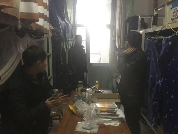 活动伊始,检查队伍重点走访了学23、27公寓。检查过程中,孟德洋书记与宿舍学生进行了亲切交流,他首先对学生们认真准备、积极打扫宿舍的态度表示了肯定,希望他们一定要严格执行校院两级卫生检查标准。针对部分宿舍出现的使用违规电器、随意拉扯电线等安全隐患问题,孟书记提出,安全问题无小事,同学们一定要足够重视,不能掉以轻心,特别是假期来临之际,一定要做宿舍好安全隐患的排查工作,不能出现任何安全问题。随后,各年级辅导员也深入到学生宿舍进行了安全卫生检查,针对宿舍存在的安全卫生问题提出了具体整改建议。
