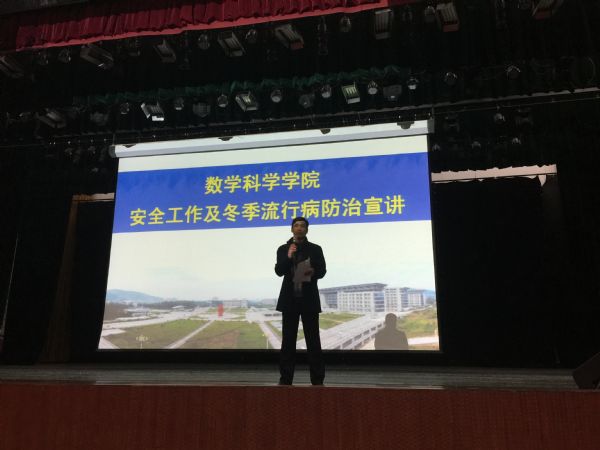 为做好学生安全保障工作,提高学生安全防范意识,并根据秋冬季节流行病高发的情况,学院召开了学生安全工作及冬季卫生防治宣讲大会。学院全体学生参加会议,学院领导、辅导员参加会议。