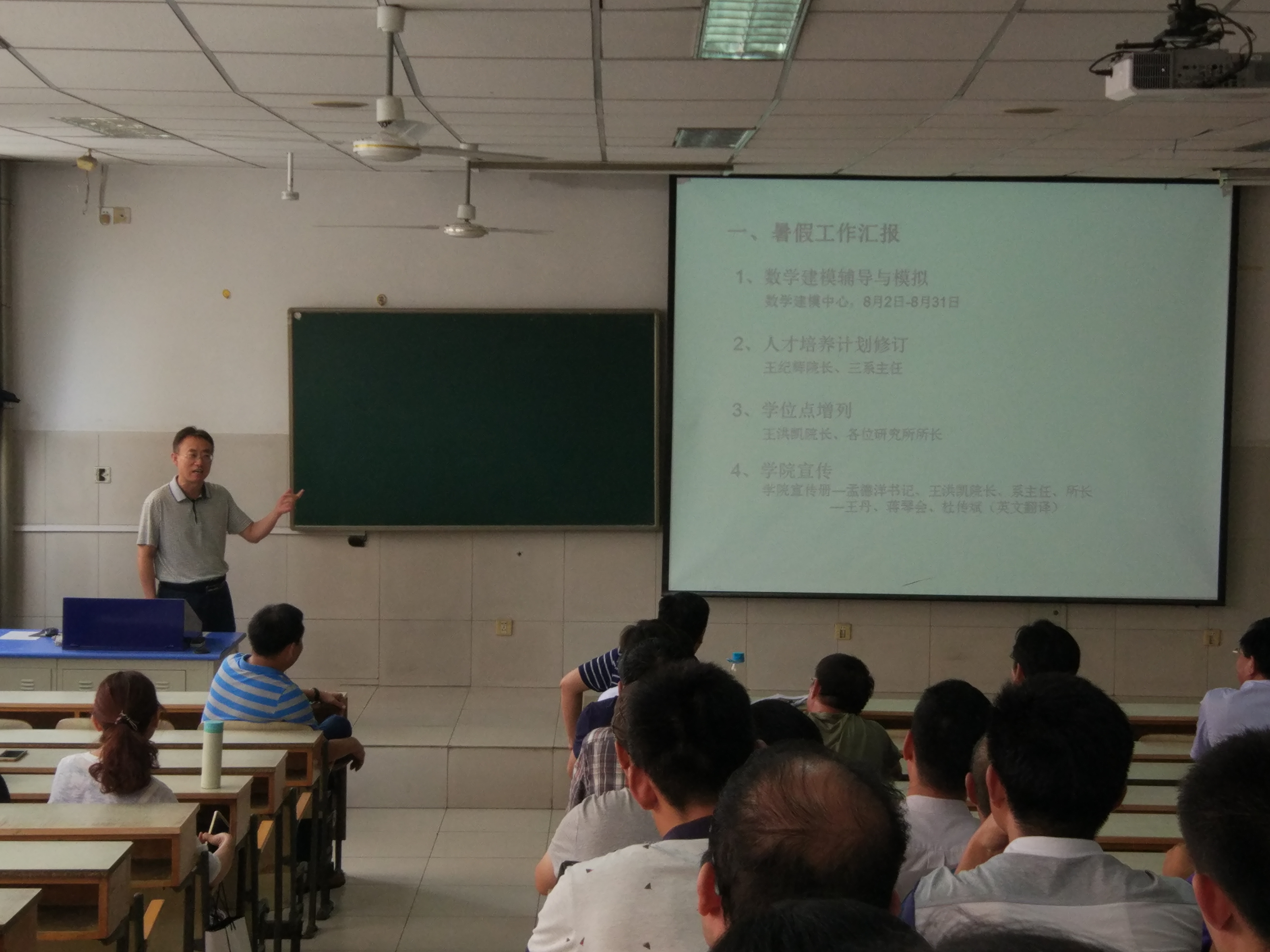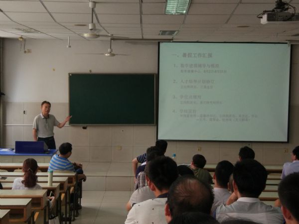 学院管延勇院长在讲话中结合培训会议精神,就学院发展以及面临的问题,及学院取得的成绩进行了详实总结,肯定了各位老师的工作成绩,特别是部分教师今年在国家基金方面取得的成绩表示高度赞扬。开学在即,要求全体员工要认真部署好新学期的工作,确保新学期各项工作的平稳运行。