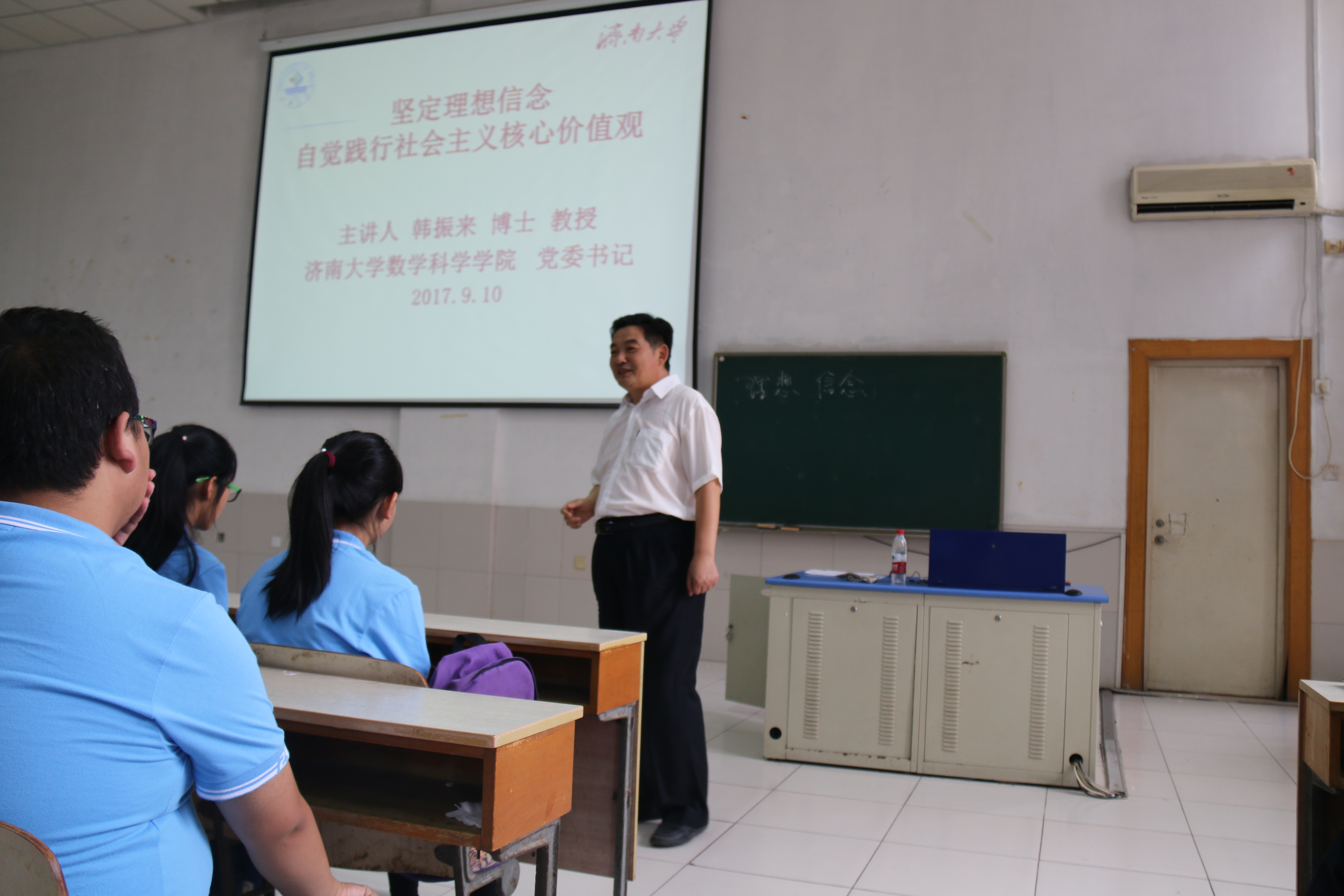 为了使2017级新生尽快树立正确的人生观和价值观,了解理想信念对当代大学生进步的重要性,学院于9月10日下午在第二教学楼201举行新生入学教育。活动由allwincity万象城党委书记韩振来主讲。