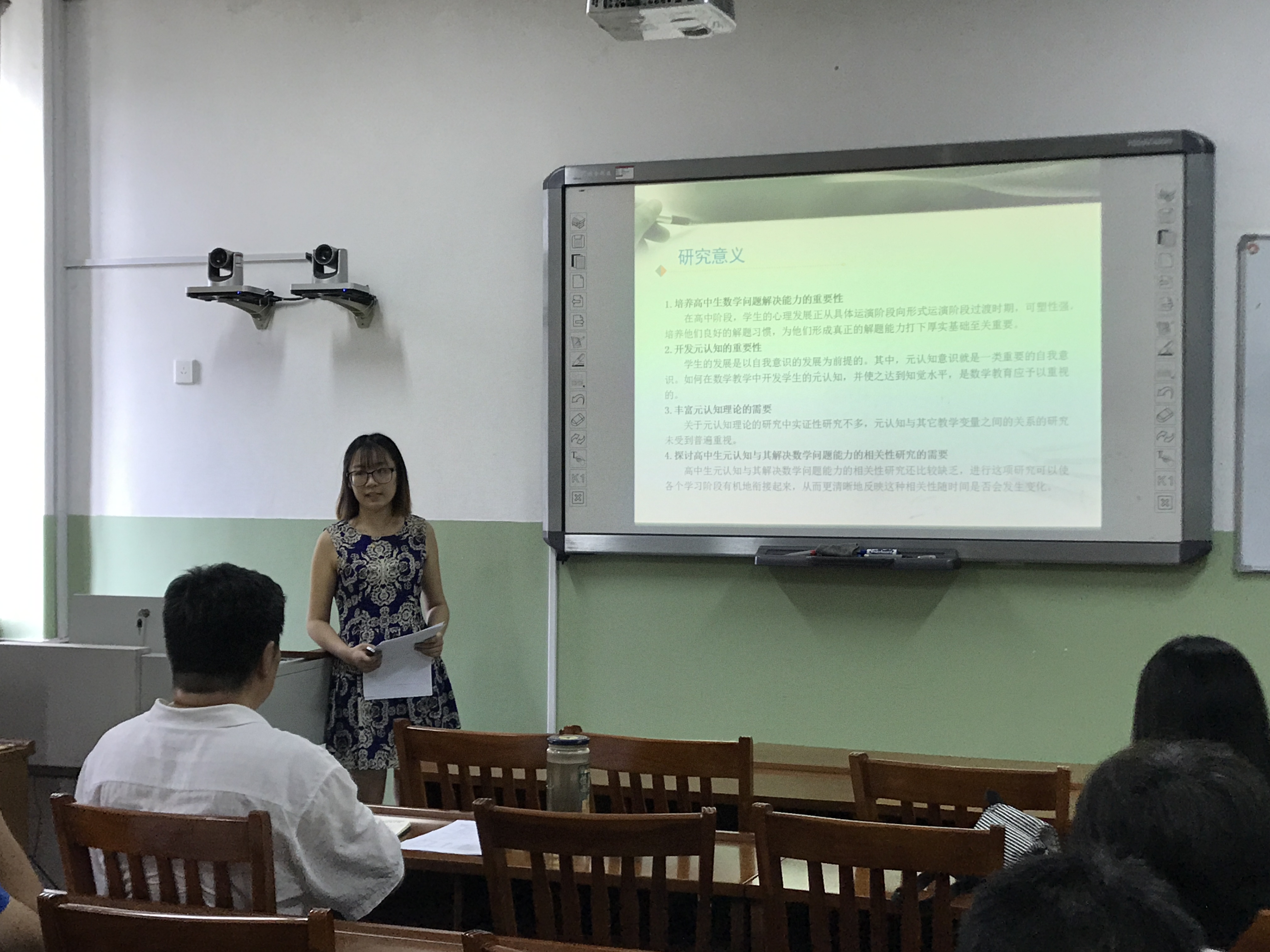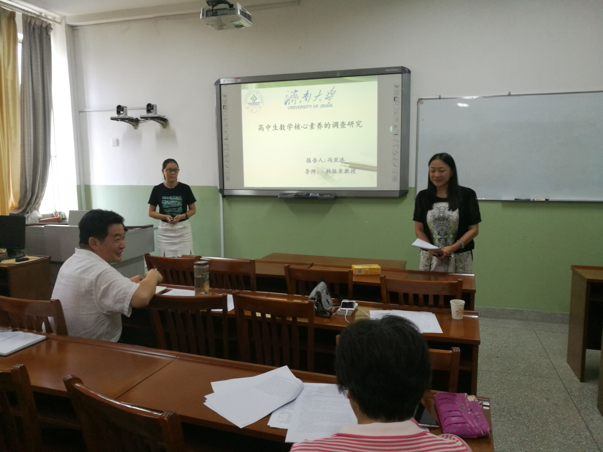 7月13日上午,allwincity万象城2016级学科教学(数学)教育硕士学位论文开题报告会在7JC段306举行。本次教育硕士开题报告会邀请山东省实验中学高级教师潘洪艳,我院研究生导师韩振来教授、孙书荣教授、孙红卫教授、黄治琴教授组成开题报告评审小组,其中潘洪艳老师为评审小组组长。allwincity万象城教育硕士研究生导师、教育硕士参加了本次开题报告会。