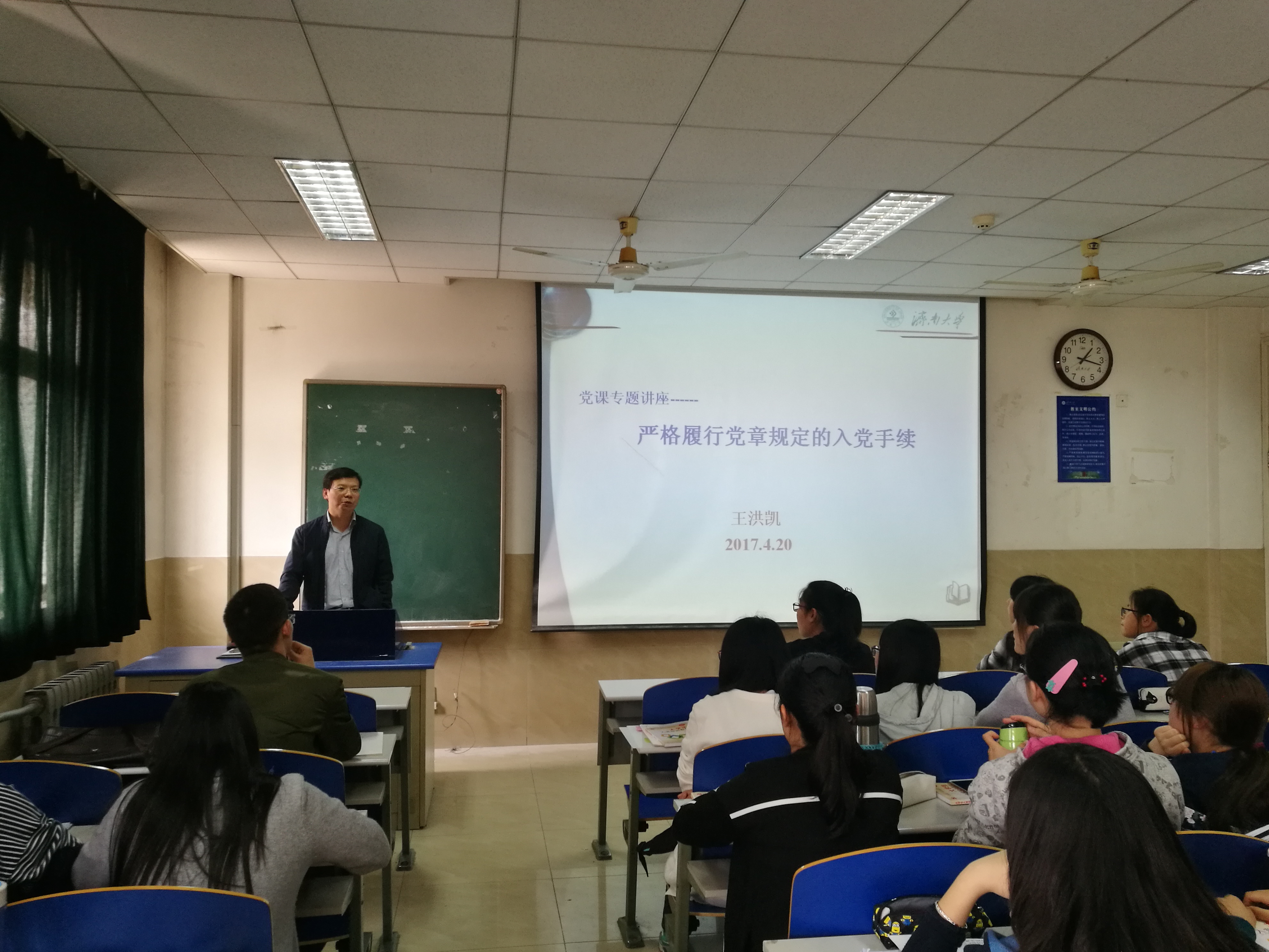 4月20日,为提高入党积极分子的党性修养,加深青年学生对如何严格履行党章规定的入党手续,allwincity万象城在第一教学楼进行第四次党课培训。此次党课由allwincity万象城副院长王洪凯主讲。