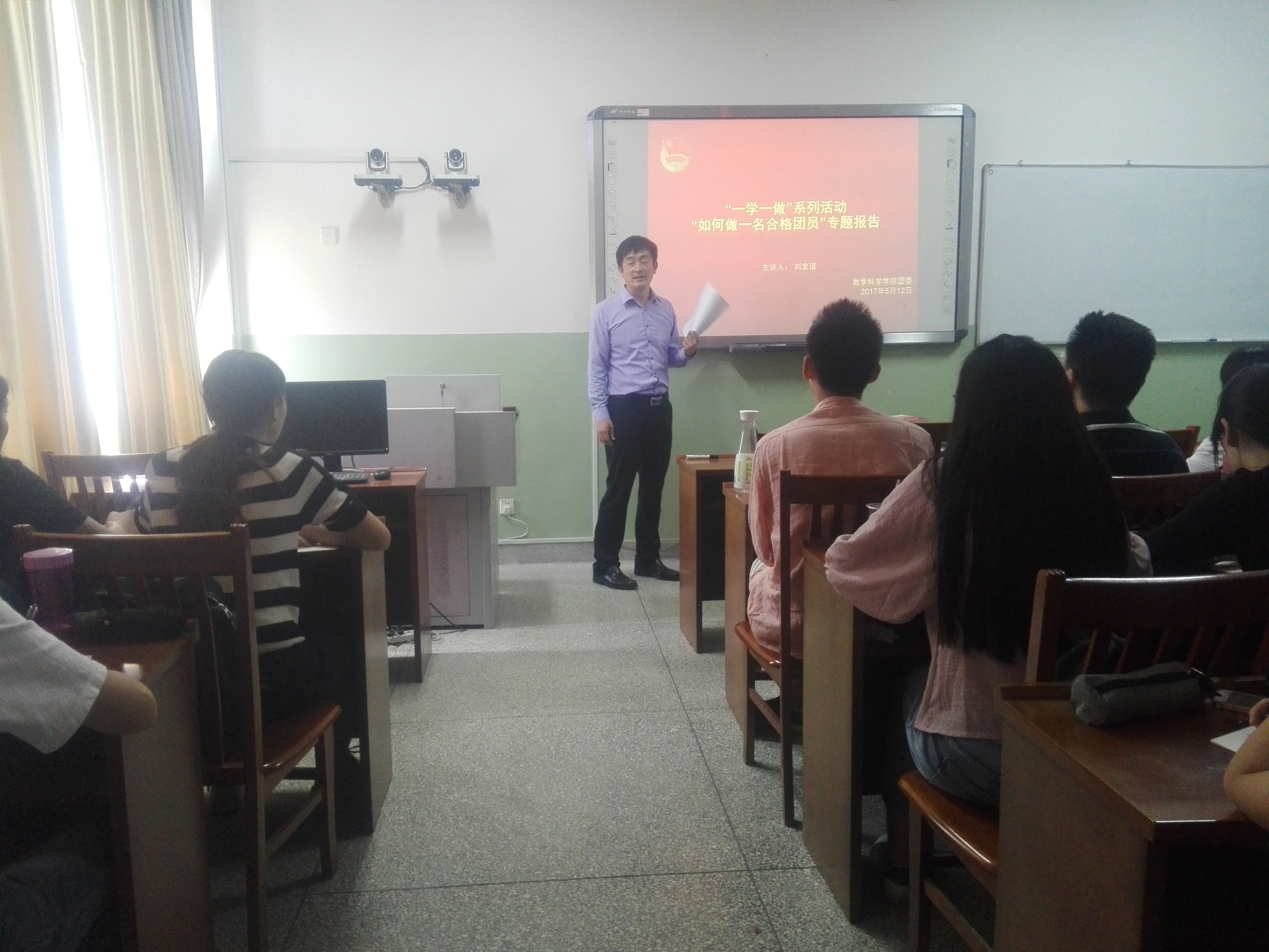 报告伊始,刘老师就活动内容及目的进行阐述,随后他围绕如何做一名合格的共青团员进行深入讲解,并指出要加强学习习近平总书记系列重要讲话精神,同时强调团员应在思想上、政治上、行动上向习近平同志为核心的党中央看齐,在日常生活和学习中严格自我要求,努力提升自身能力。刘老师倡导各团支部通过支部生活会、学习会、民主生活会等形式,提高学习成效。活动最后刘老师阐述了近期的活动安排及学院团委改革相关事宜。
