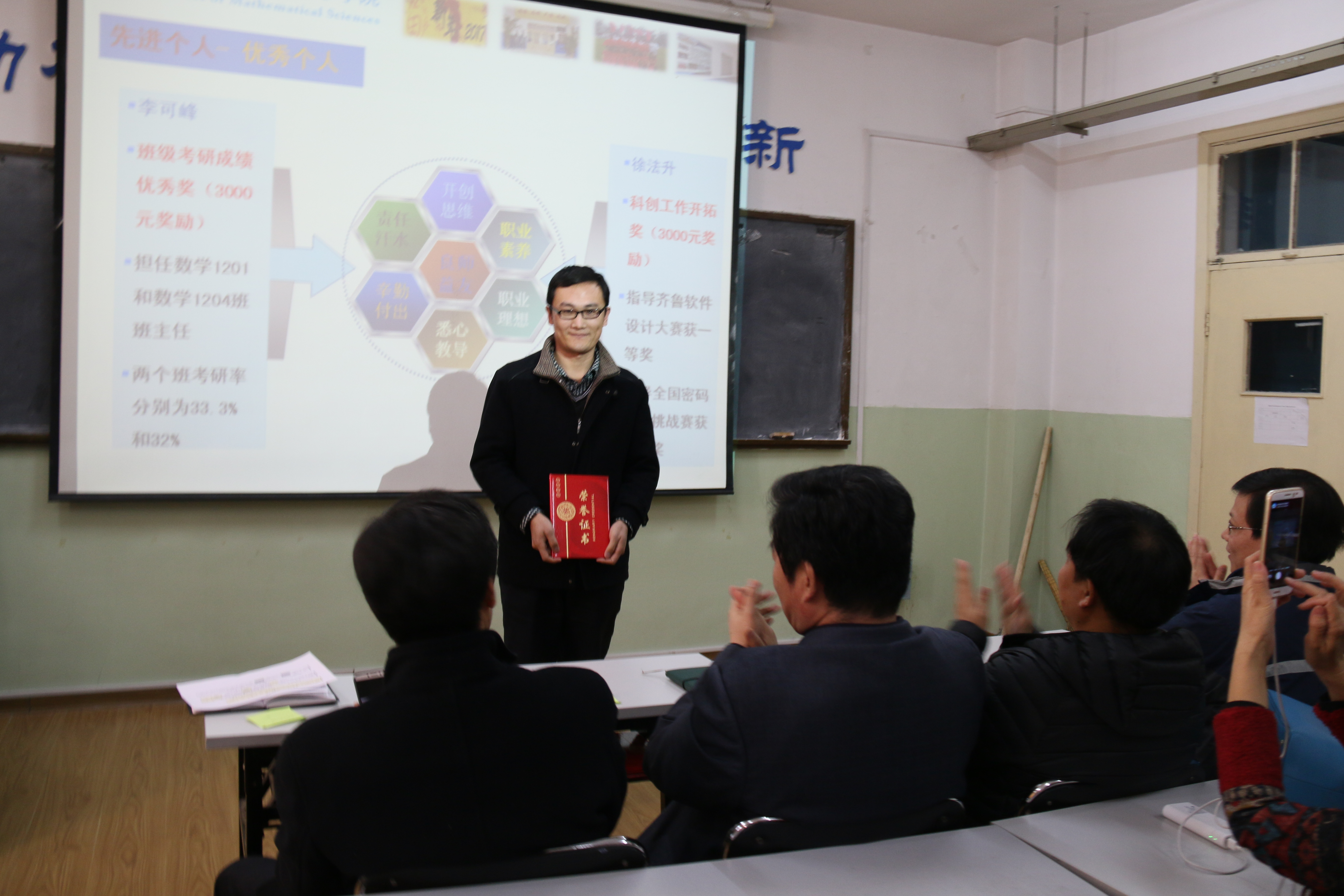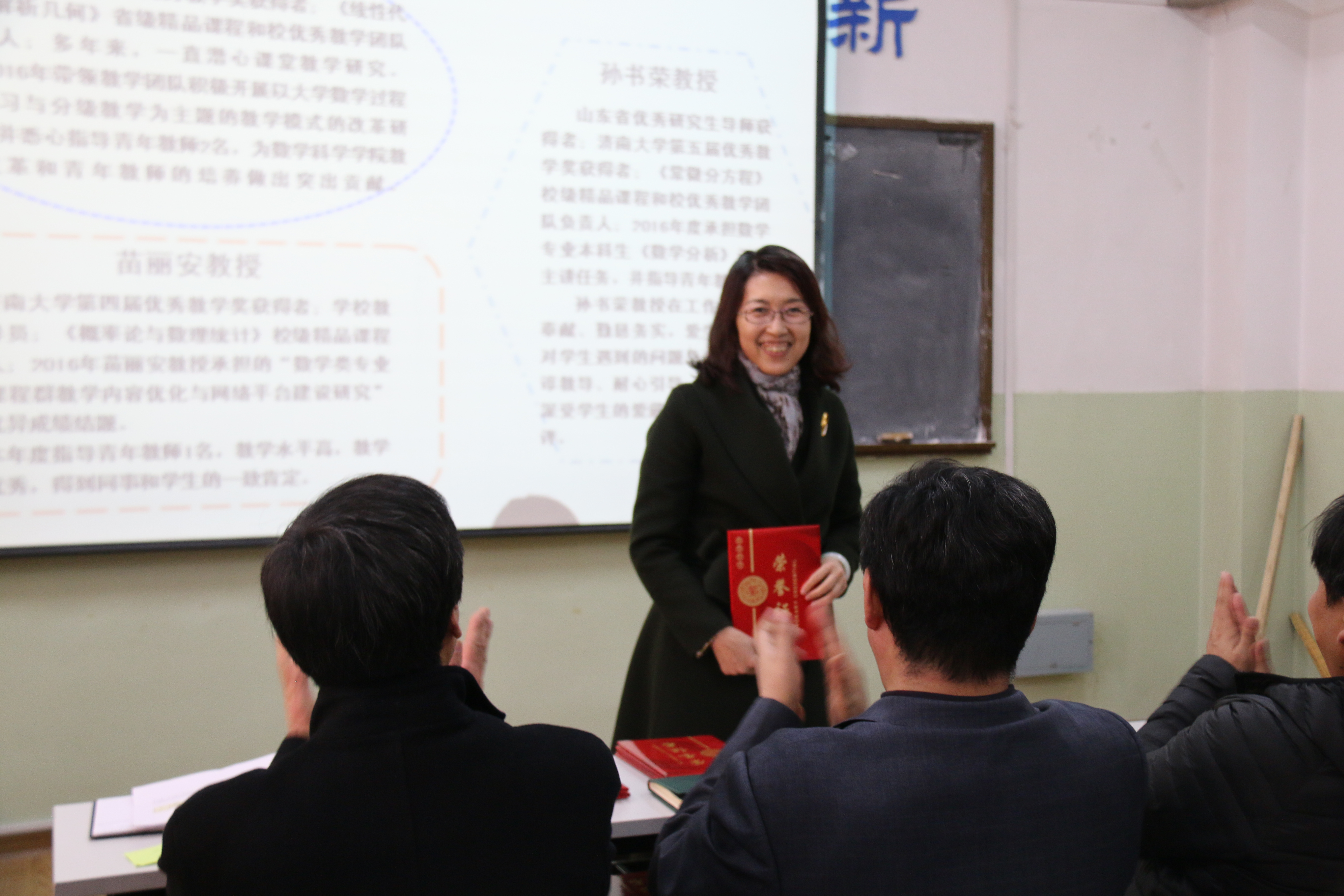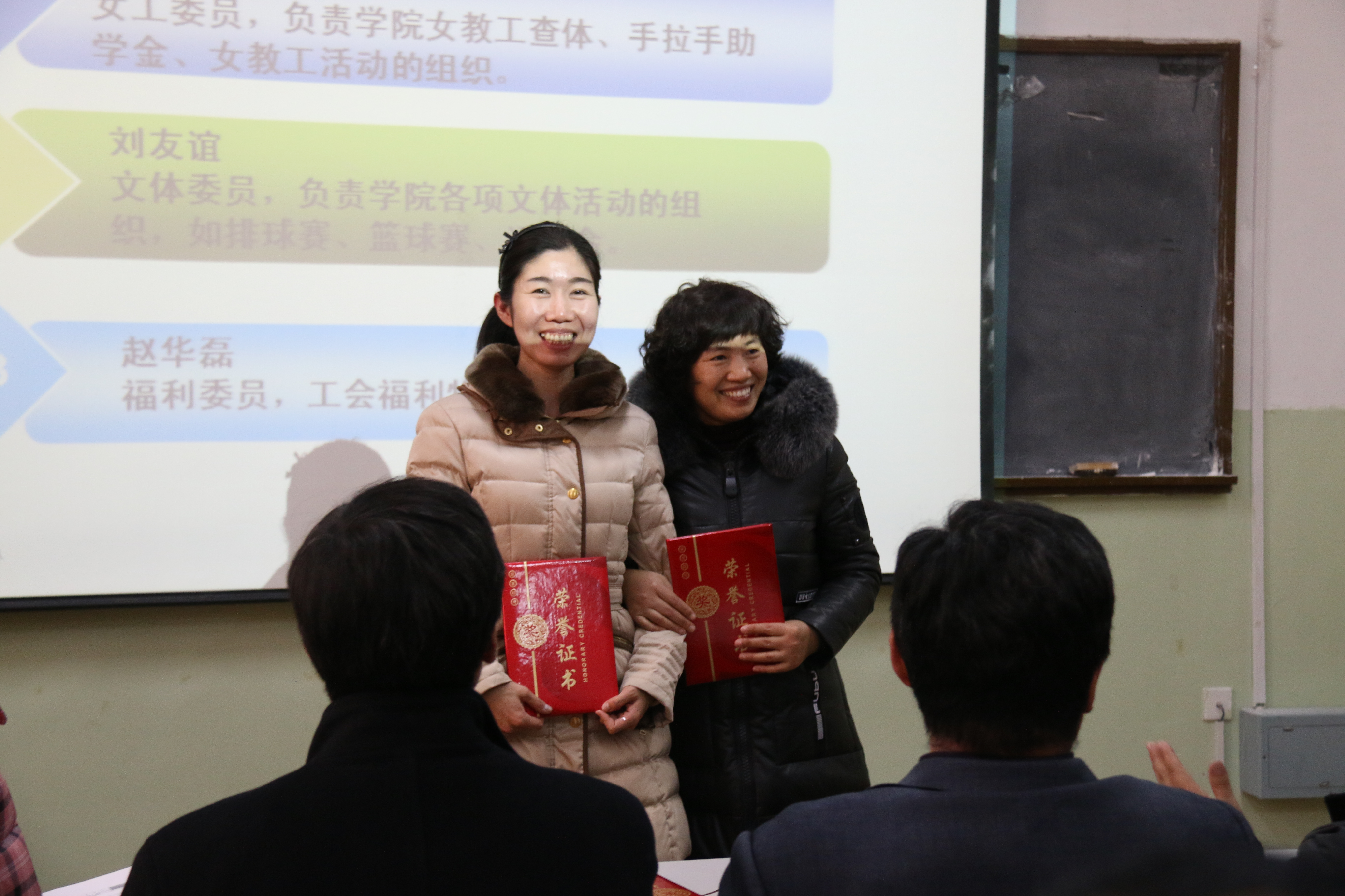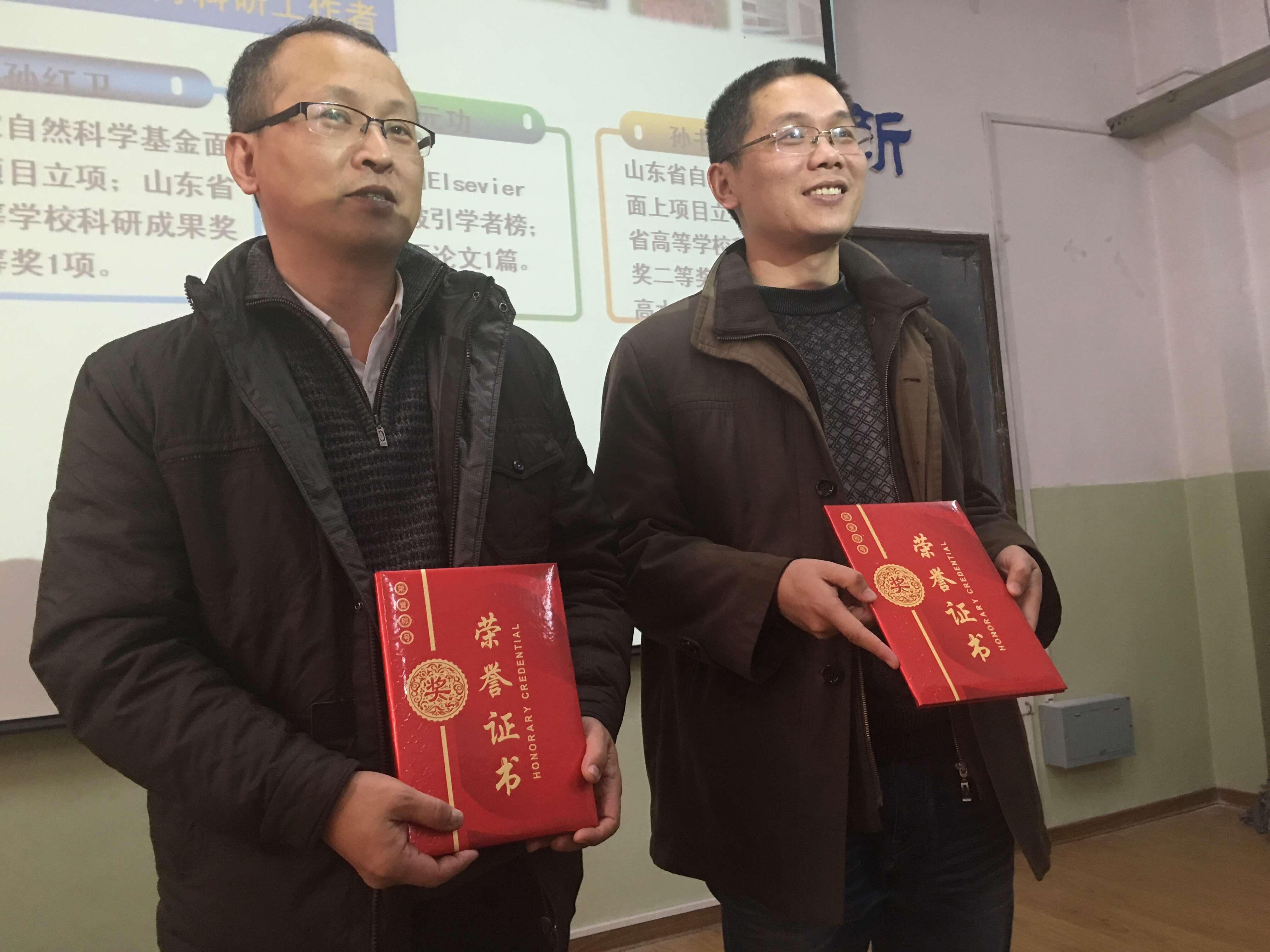 会上,公布了学院2016年十大事件;表彰了数学建模指导中心、数学教育教研中心、微分方程研究所等先进集体;表彰了优秀科研工作者孙红卫、孙元功、孙书荣、陈观伟、张娜、李楠;表彰了优秀教学工作者张苏梅、苗丽安、孙书荣、吴鸿华、王洪凯、宋玉成;表彰了评教优秀的前六名教师吕洪波、祁晓光、张培龙、马 超、吴兆荣、赵 燕;表彰并奖励了班级考研成绩优秀奖的李可峰;表彰并奖励了科创工作开拓奖的徐法升;表彰并奖励了工会活动积极分子马巧灵、刘友谊、赵华磊。