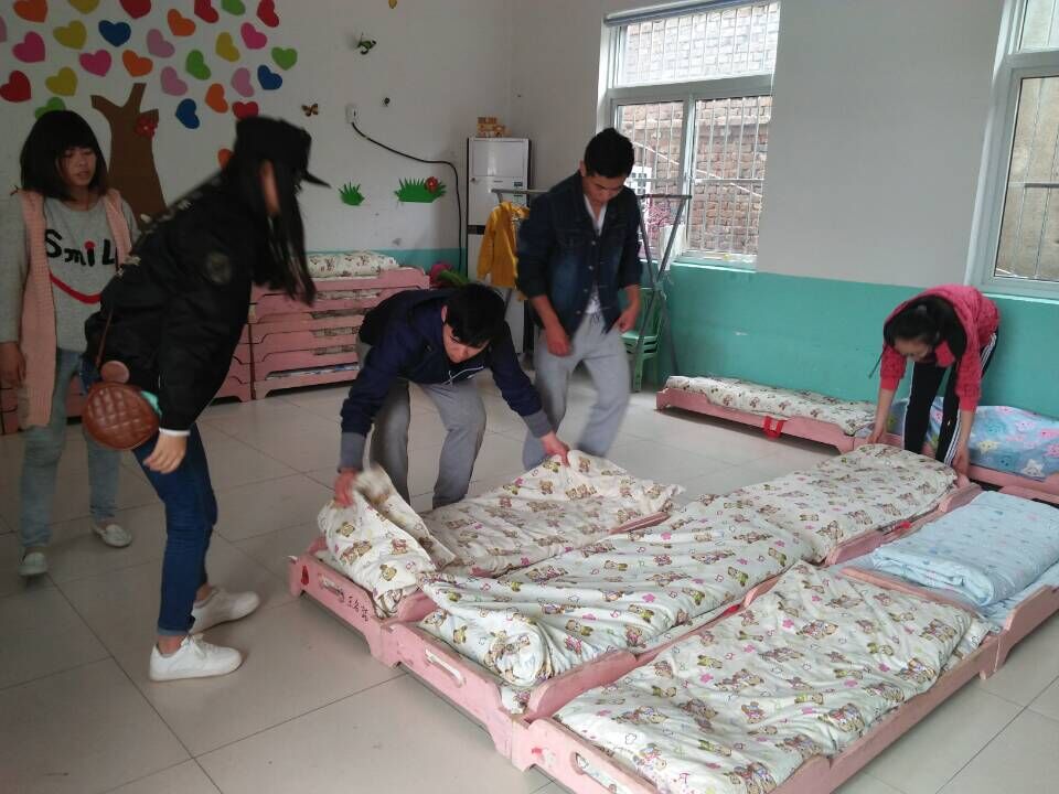 下午两点,志愿者们到达后魏村幼儿园,学校老师表示真挚欢迎。在老师的指引下志愿者们来到了教室,此时孩子们午休刚刚结束,见到志愿者们,孩子们十分高兴地欢迎大哥哥大姐姐们的到来。志愿者们首先帮助老师整理好孩子们的床铺,给他们整理好桌凳,然后安排他们坐到自己的座位上。随之志愿者们给小朋友分发了学习的资料,在教室和他们一起学习,一起动手制作,还做了有趣益智的小游戏。看到孩子们脸上洋溢着开心的笑容,志愿者们也十分欣慰。