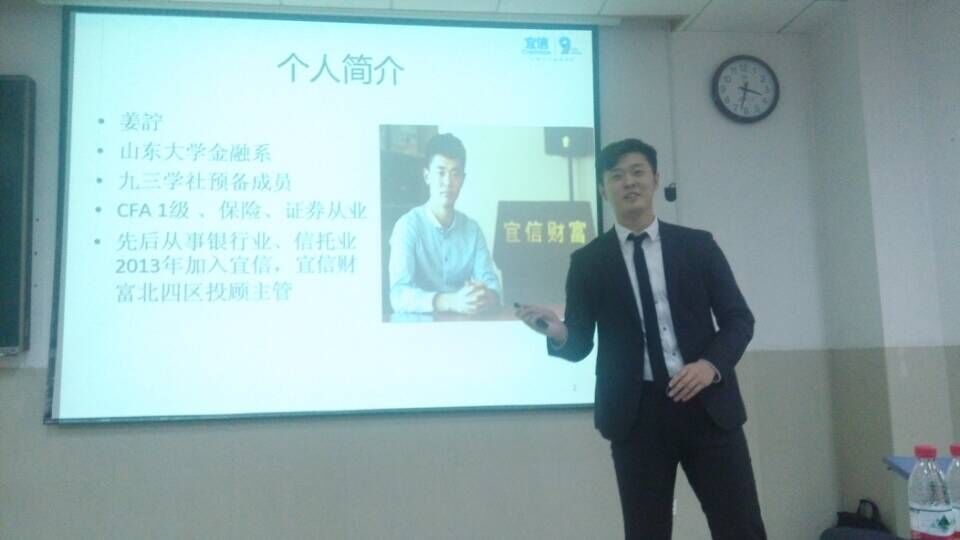 会议伊始,温凤桐主任向同学们介绍了姜詝的基本信息,姜詝毕业于山东大学金融系,是九三学社的预备成员,曾获得CFA1级证书,先后在招商银行、宜信财富等企业从事银行业及信托业。