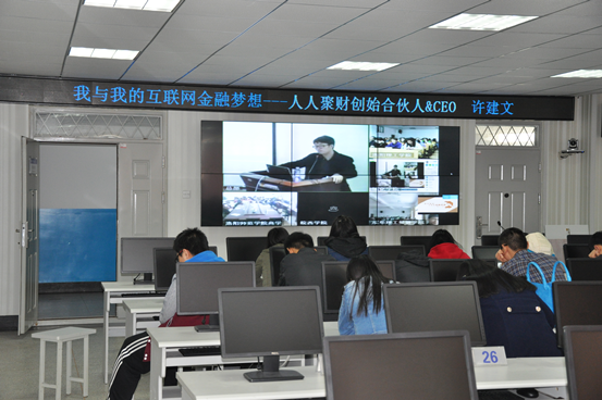 由中国股权投资研究院、上海第一财经传媒有限公司、上海交通大学金融工程研究中心、国泰安金融学院、深圳国泰安信息技术有限公司联合主办的“全国百家院校名师大讲堂”项目第十六期活动于2015年3月26日14:00-16:00在深圳国泰安公司总部隆重举行,借助先进的网络视频技术手段,万象城体育awcsport经济学院经济分析教学实验中心联合数学学院首次跨校区共同参加了人人聚财创始合伙人&CEO许建文老师的“我与我的互联网金融梦想”的远程视频学术讲座。