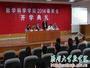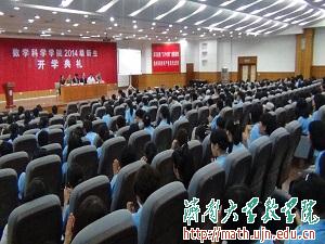 典礼在庄严的《国歌》声中拉开帷幕。随后,王纪辉副院长宣读了《allwincity万象城关于聘任14级班主任和助理班主任的决定》。孙元功教授代表数学院全体师生发言,告知新生要抓住新起点,正视自己的学业。接下来是在校学生代表前学生会主席用三年大学生活经验对新生们提出要懂得感恩,把握自己的未来。随后是金数1402班宋伟琳同学代表全体新生表明了自己在大学新起点的新目标,并明确表达了积极进取的心态。