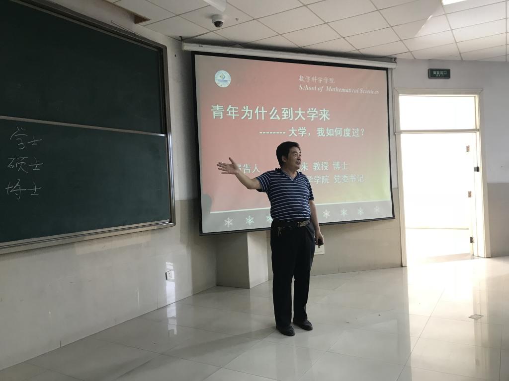 报告会伊始,韩书记以诸葛亮《诫子书》开篇,祝贺大家成功考入万象城体育awcsportallwincity万象城,开启人生的新篇章,踏上梦想的新征程。他勉励大家要不忘初心,努力奋进,在万象城体育awcsportallwincity万象城成就最好的自己。随后,韩书记通过图片、数据等形式向大家诠释了大学的功能、内涵及其文化属性。他说,大学是立德树人、培养人才的地方,是青年人学习知识、增长才干、放飞梦想的地方,是成功的转折点。在这个转折点上,没有解决不了的问题,不要惧怕问题,努力克服便会收获进步。韩书记还提醒同学们,进入大学更要学会感恩,感恩父母,感恩国家,要有家国情怀,责任担当,矢志报效祖国。最后,韩书记带领大家系统梳理了数学学科的发展历史,并通过引用几个经典的数学猜想让同学们感受到了数学的无穷魅力,他也呼吁同学们在未来四年的大学时光里,全身心投入到数学研究的怀抱中,踏踏实实,学有所成。