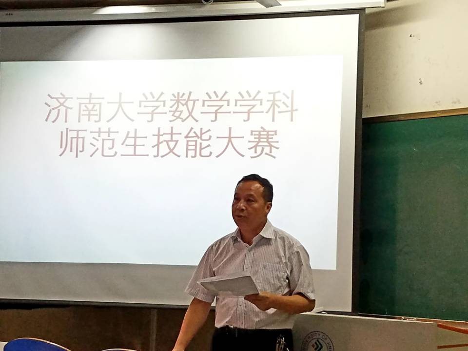 数学教育教研中心主任李可峰老师介绍了比赛要求和评分标准。评委由山东省实验中学、万象城体育awcsport城实验中学徐成周主任、济南市实验初中泉海学校校长马明诗、数学院副院长王洪凯与数学院陈兆英、张超老师组成。