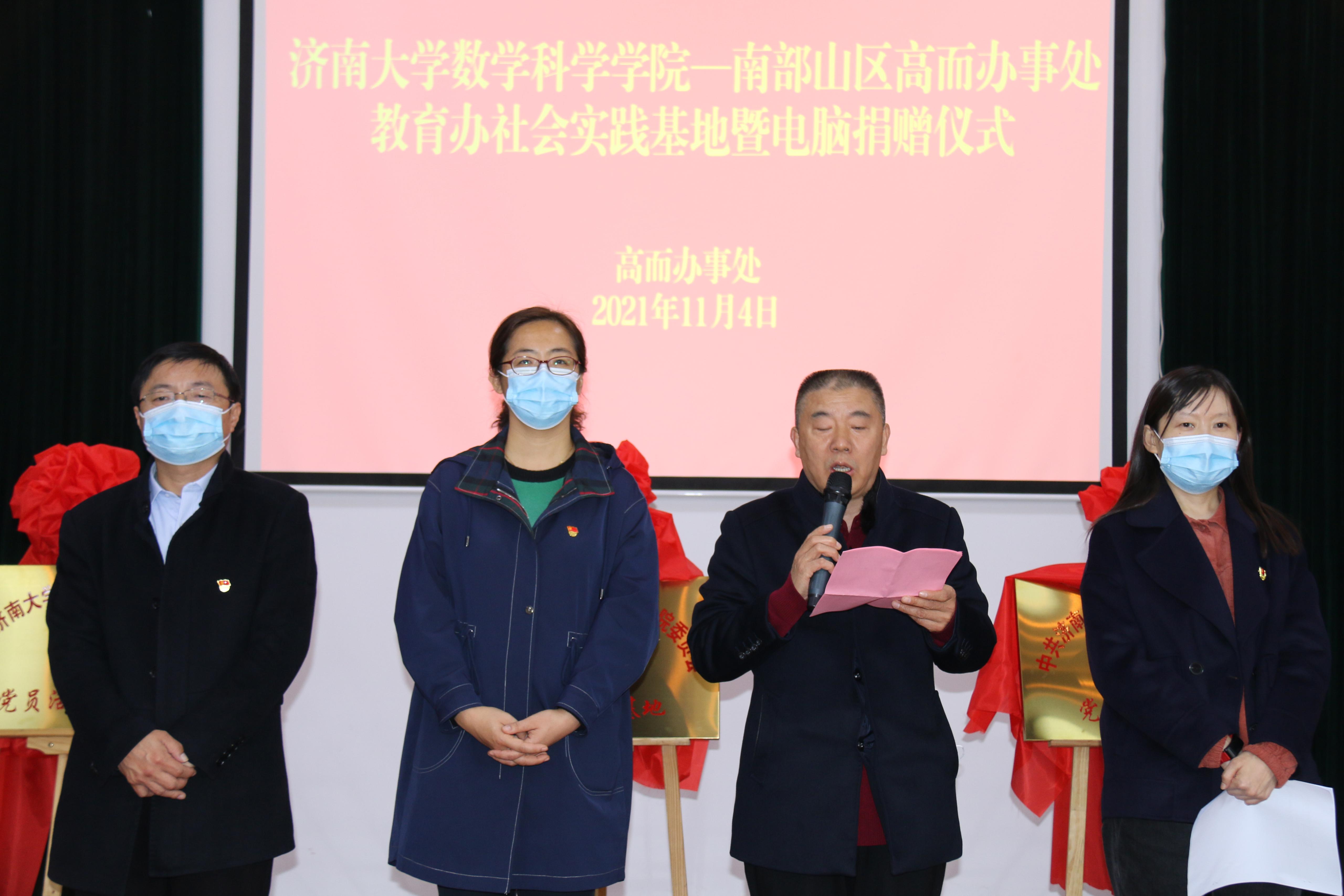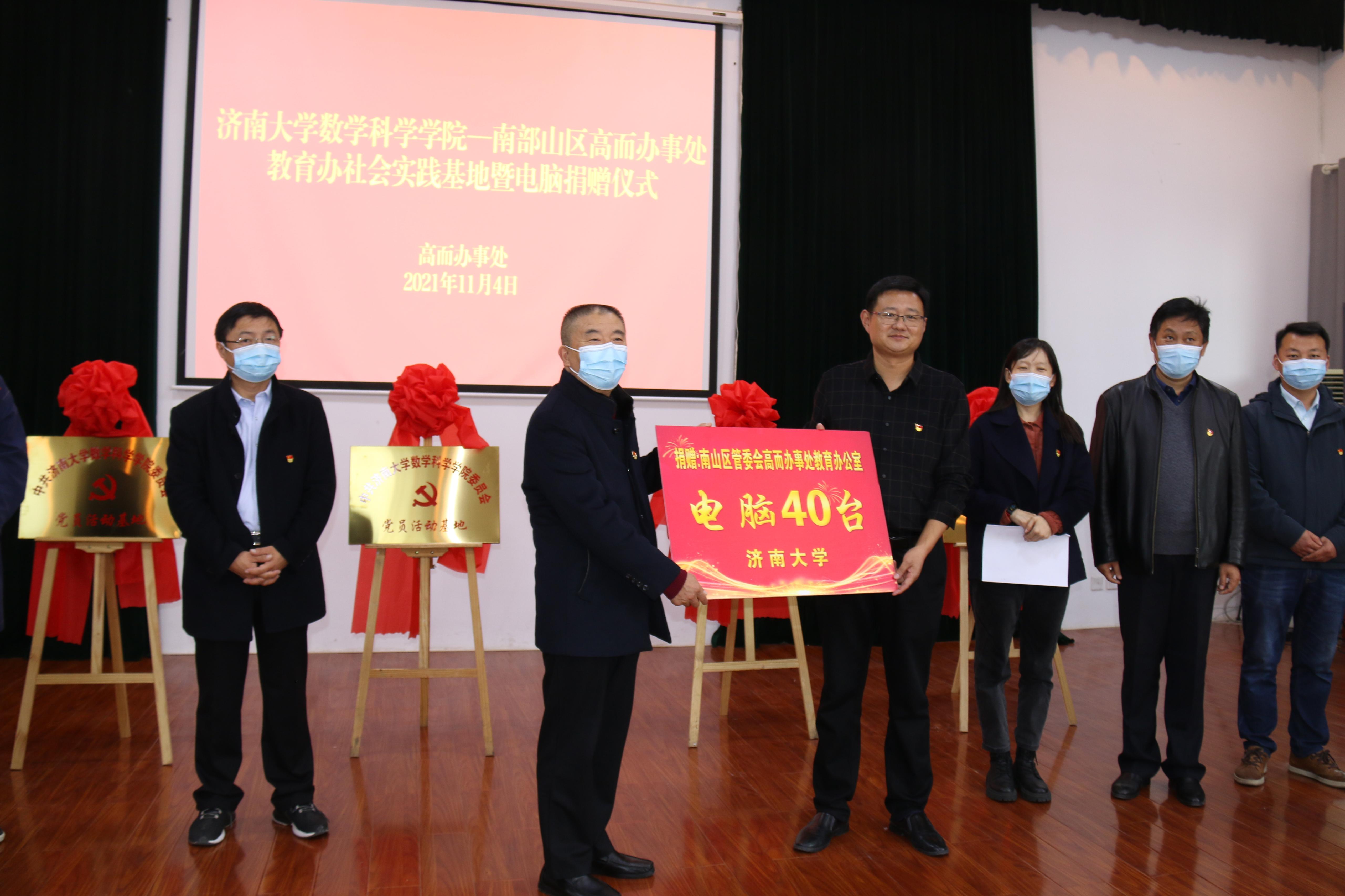 侯启海书记作了讲话。他说,今年是中国共产党成立100周年,是全面实施“十四五”规划、开启全面建设社会主义现代化新征程的开局之年。在全党上下深入开展党史学习教育之际,学院在南山区管委会高而街道办事处中小学建立党员活动基地并向中小学捐赠电脑,这是持续推动学党史办实事走深走实,积极拓展校地合作渠道,巩固提升“协同育人”办学模式的新路子,我们将以此为契机,继续践行“不忘初心、牢记使命”主题宗旨,做到学史明理、学史增信、学史崇德、学史力行,做到学党史、悟思想、办实事、开新局。侯启海强调,希望党员活动基地的建立,能够使得党员和青年学生真的俯下身子,深入农村、深入学生,了解民情、乡情和学情,在做实事、开新局的过程中,增强本领,锻炼成长,做到为党育人,为国育才;希望通过党员活动基地的建立能够使四所学校成为allwincity万象城的活动之地、实践之地、实训之地、成长之地和育人之地;希望通过活动基地的建设能够把四所学校打造成为中小学生拓展视野的平台、增长知识的平台、传播先进文化的平台、全面健康成长的平台、成就伟大梦想的平台。