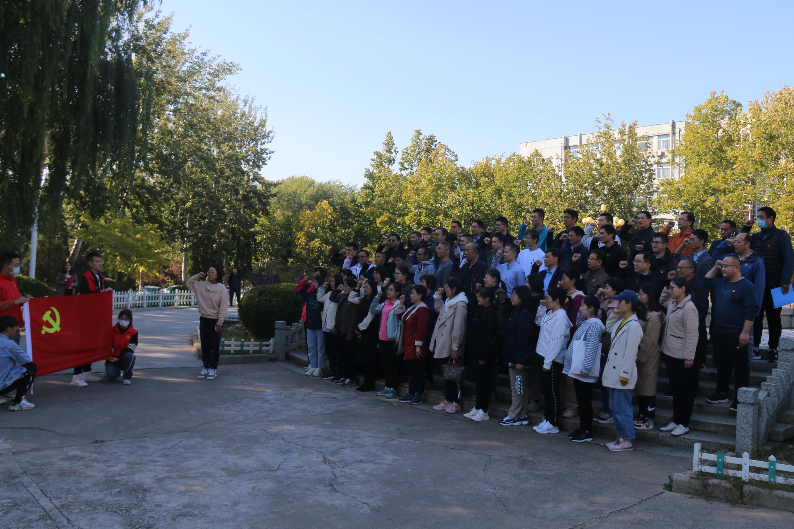 在绿泉广场上,全体教工党员举起右拳,面向鲜红的党旗,重温入党誓词。“我志愿加入中国共产党……随时准备为党和人民牺牲一切,永不叛党。”铿锵的誓词,强烈震撼着在场的每一位党员,一字一句,自信豪迈,坚定忠诚。