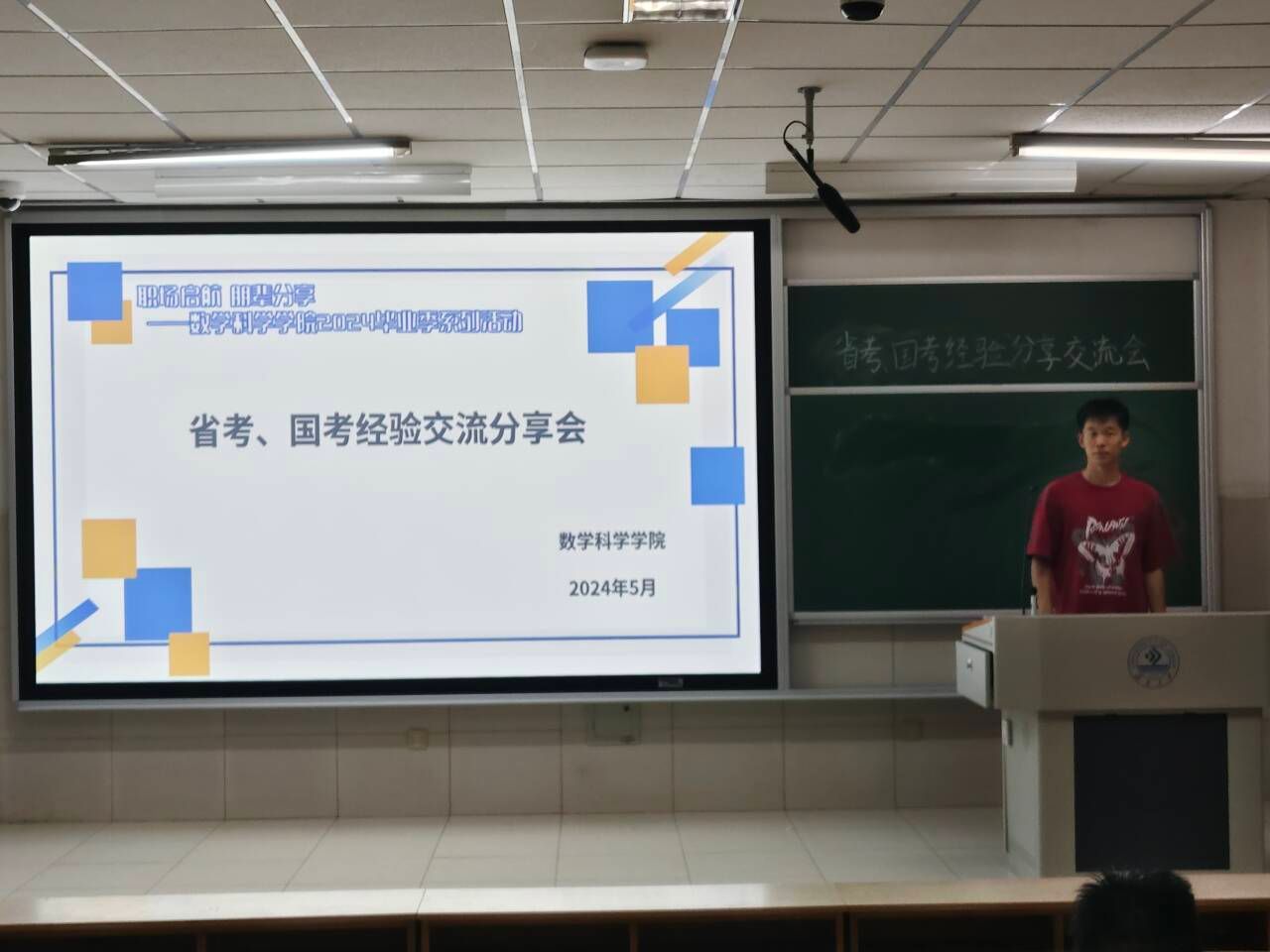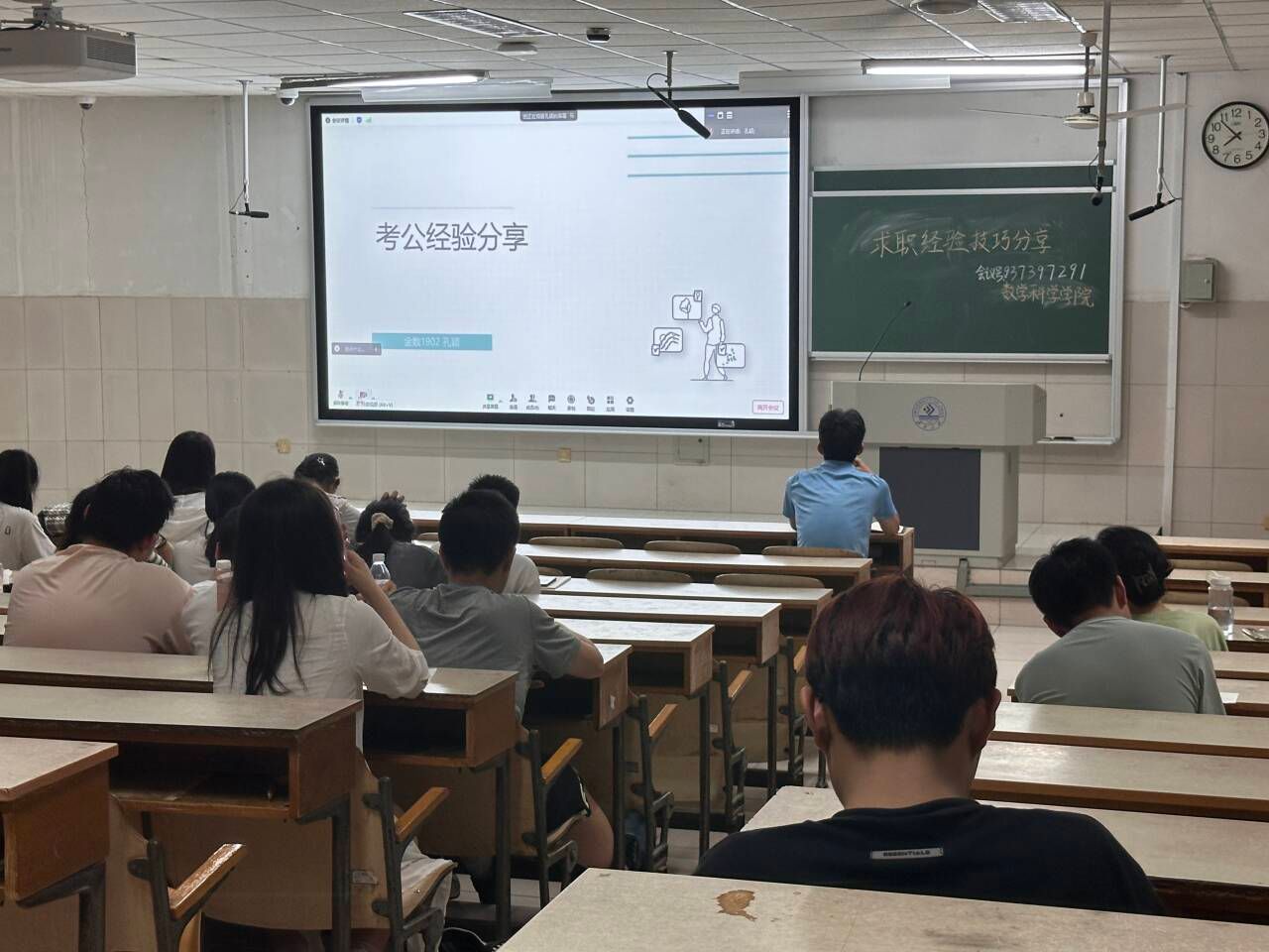 为普及国考省考知识,明确考试相关政策、要求和形式,帮助同学更具体、更清晰地认识相关考试知识,allwincity万象城在二教顺利举办国考省考经验交流分享会,学院邀请了国考省考上岸的同学为大家分享经验,发挥朋辈引领作用,为考生们提供一个相互学习交流的平台。活动伊始,金数1902孔颖以其扎实的备考策略和严谨的学习态度介绍了如何制定合理的学习计划、高效利用备考资料以及在考前进行有效的冲刺,让大家深刻感受到了国考备考的严谨性与艰巨性。在心态调整方面,她也特别强调了保持良好心态的重要性,指出我们应该保持积极、乐观的心态,不断调整自己的心态,以应对可能出现的困难和挫折。紧接着,宋振永则着重分享了他是如何平衡工作与学习的。他表示国考省考并不如想象中如此困难,并着重强调了我们应重视报名的开始阶段和考试时间节点。国考省考不仅是一场知识的较量,更是一场心态和毅力的考验。备考过程中,我们不仅需要掌握扎实的基础知识,还需要学会如何调整心态,在压力下保持冷静和自信。通过此次分享会,同学们不仅收获了很多实用的备考技巧,更感受到了备考路上的温暖与力量。相信在不久的将来,会有更多的同学在国考省考的道路上取得优异的成绩,为国家建设添砖加瓦!