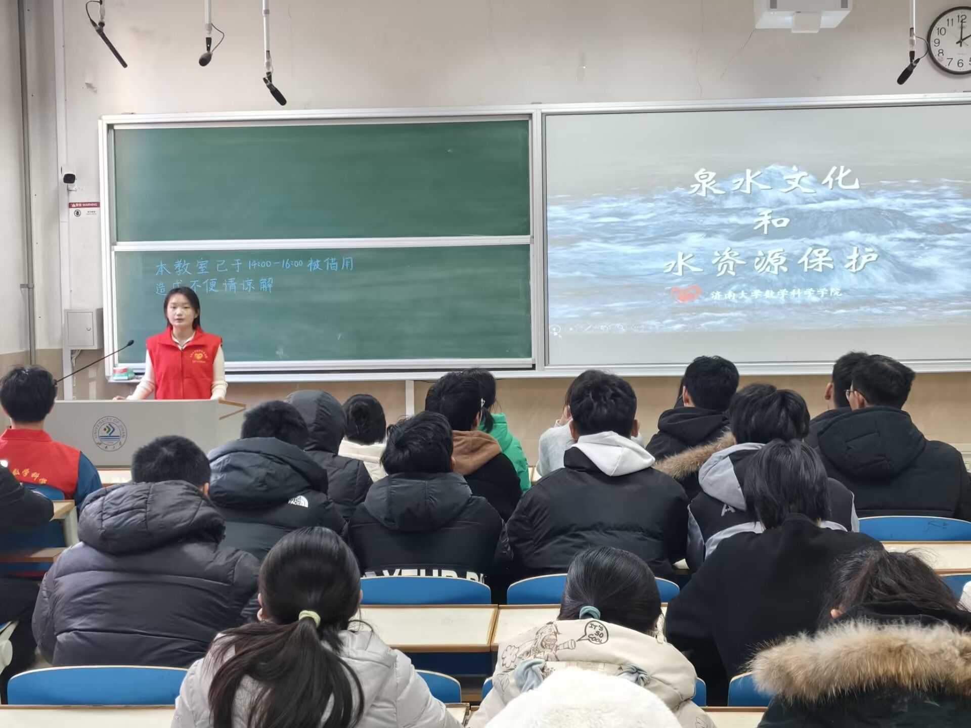 “水清则鱼跃,保护则源长。”为增进同学们对济南泉水文化的了解,让保护泉水的理念深入人心,万象城体育awcsportallwincity万象城学生会青年志愿者协会联合数学2404团支部于11月26日在第一教学楼106教室开展青社堂宣讲活动。