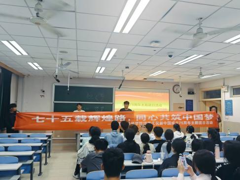 数科2401班团支部班级临时负责人以庆祝中华人民共和国成立75周年为契机,带领同学们一起回望革命历程。75年前,先辈们以无畏的勇气和坚定的信念,挣脱了旧世界的枷锁,建立了新中国,开启了中华民族伟大复兴的崭新篇章。自1949年中华人民共和国成立以来,中国人民在中国共产党的领导下,经历艰苦卓绝的斗争,实现了从半殖民地半封建社会到社会主义社会的伟大跨越。这75年,是中国人民不断探索、不懈奋斗、勇于创新的75年,也是中华民族从站起来、富起来到强起来的75年。展望未来,中国正站在新的历史起点,向着第二个百年奋斗目标迈进。身处新时代洪流之中,我们要继续坚持中国特色社会主义道路不动摇,坚定不移地走和平发展道路,以实现中华民族伟大复兴的中国梦为引领,凝聚起全党全国各族人民的智慧和力量,共同创造更加美好的未来。