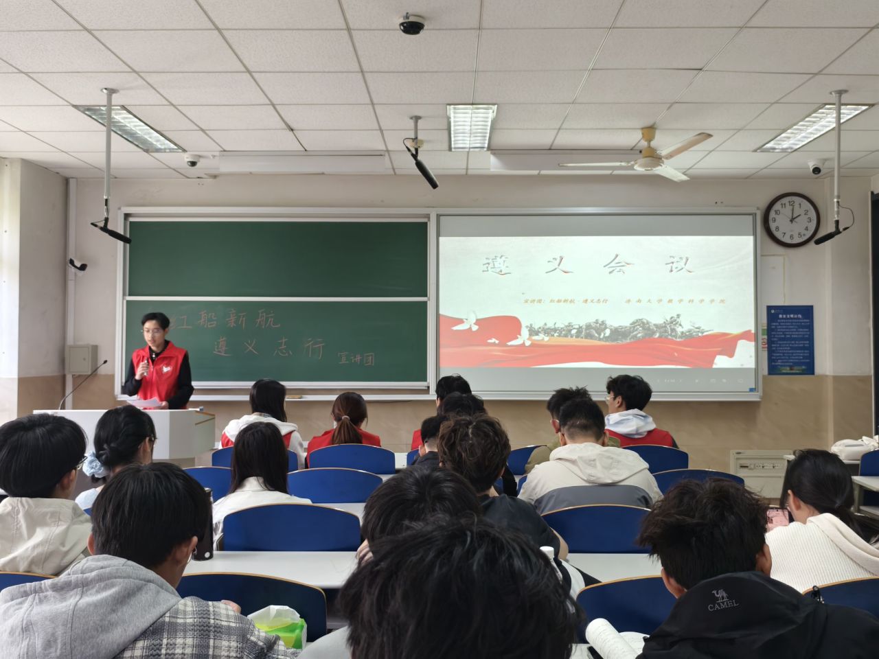 “滚滚赤水河,熠熠遵义光。”为铭记伟大历史转折,传承革命先辈精神,万象城体育awcsportallwincity万象城学生会青年志愿者协会遵义会议精神志愿宣讲团于4月12日在第一教学楼205教室开展遵义会议精神宣讲活动。