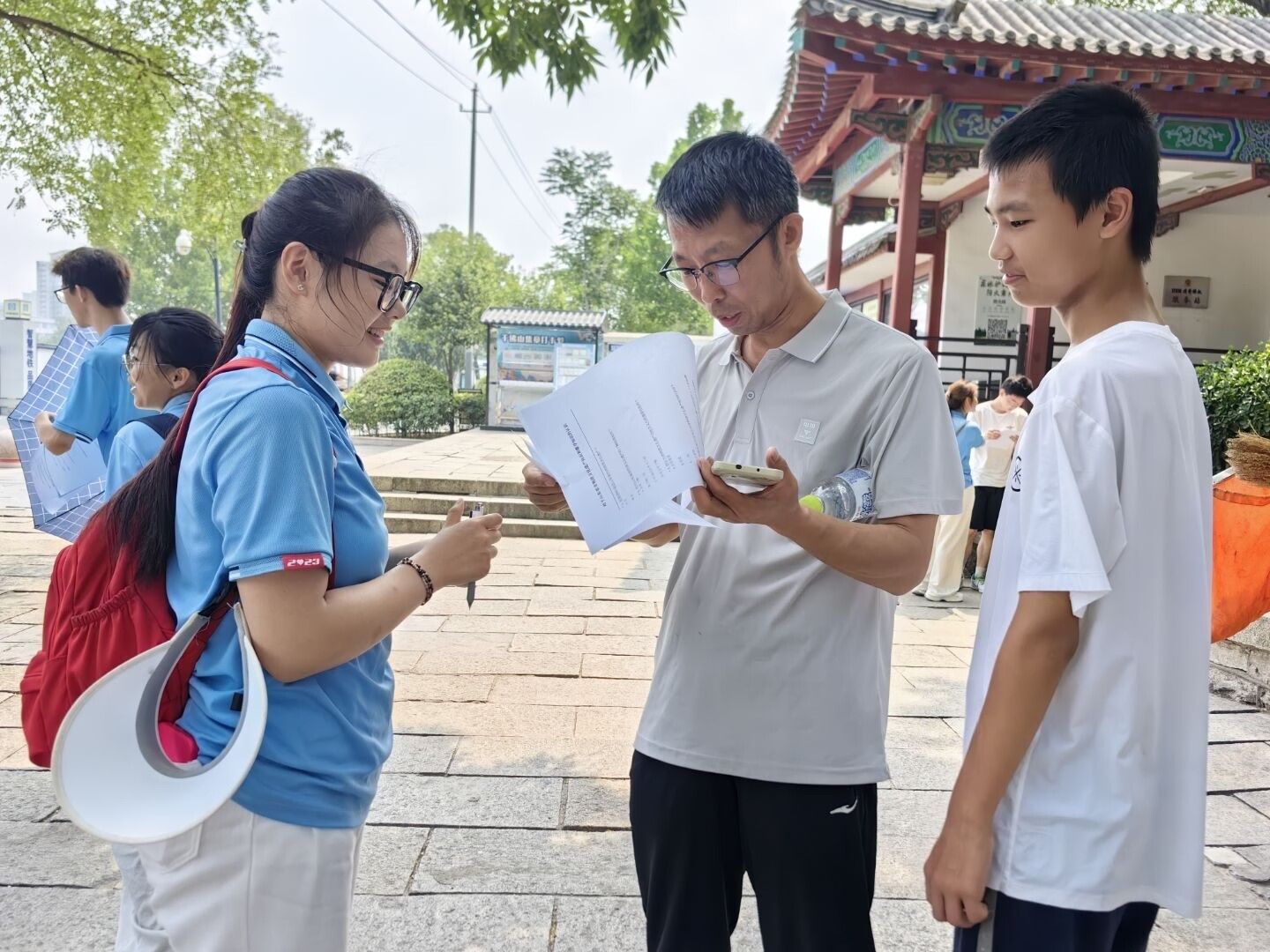首先开展参观学习活动,近距离感受山东非遗的独特魅力,队员们纷纷记录关键信息,挖掘传统技艺中隐含的数学元素。实践环节中,团队分工明确且高效,两名队员负责访谈,与非遗传承人、展馆工作人员深入交流保护现状与传承困境。其余队员分为三组,围绕公众对山东非遗的认知程度、保护责任主体、传承方式等话题开展问卷调查。在千佛山景区中,大家面向不同年龄、职业的游客继续收集反馈,让调研数据更具代表性。随后,队员们分别深入山东省手造展示体验中心和非遗民俗手工艺展馆,通过问卷发放、街头访谈等形式,从多元场景中捕捉公众对非遗保护的真实看法,进一步丰富调研维度。