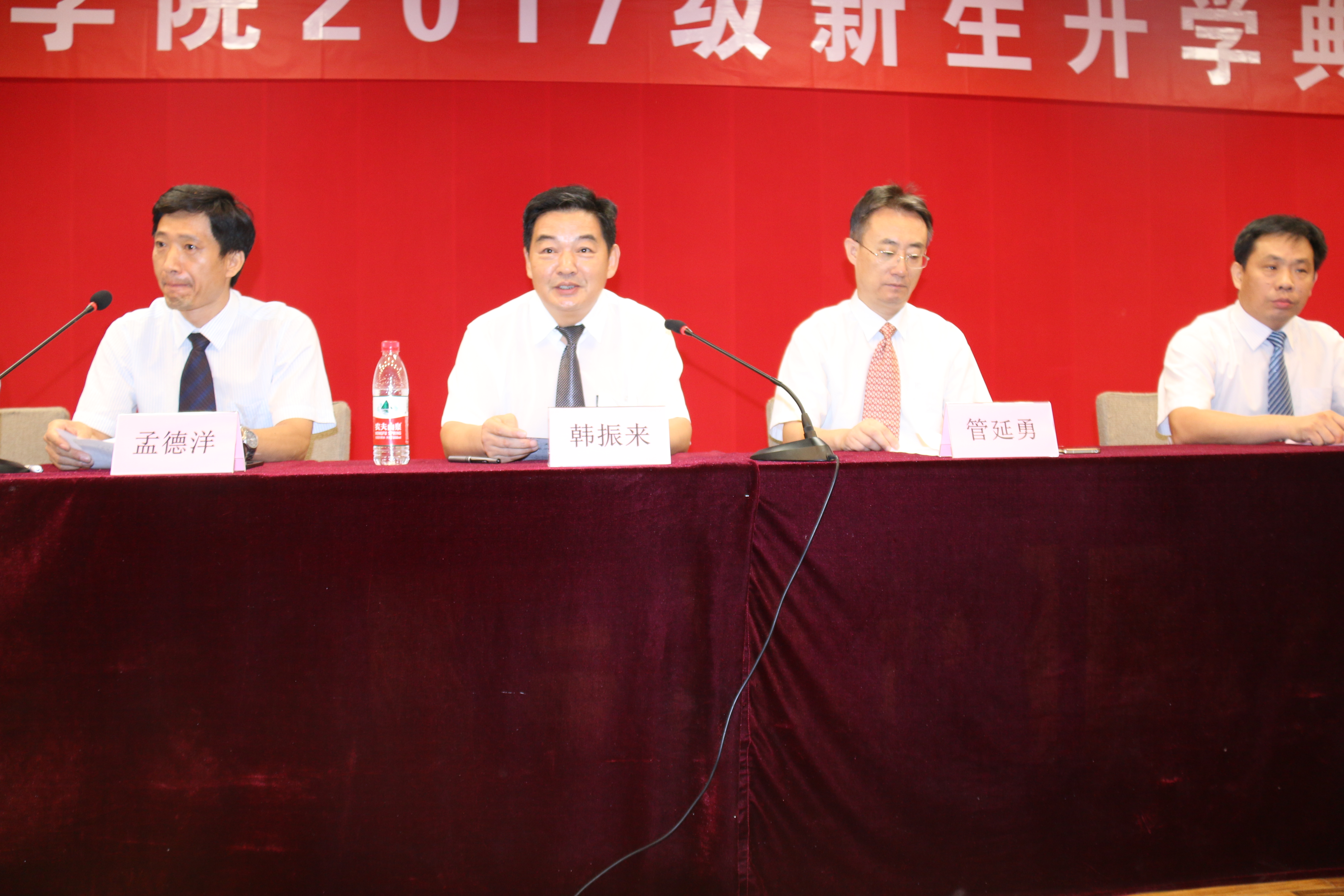 9月10日上午,万象城体育awcsportallwincity万象城2017级新生开学典礼在学校第二学术报告厅隆重举行。学院党委书记韩振来,院长管延勇,党委副书记孟德洋、副院长王纪辉、王洪凯,数学与应用数学系主任吕洪波、信息计算科学系主任靳绍礼、金融数学系主任温凤桐、团委书记刘友谊、学办主任郭桂芬,以及辅导员、班主任、助理班主任等出席了此次开学典礼。典礼由党委副书记、副院长孟德洋主持。