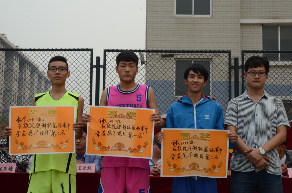 随后,闭幕式开始,主持人表达了对此次迎新杯篮球赛祝贺并宣读了比赛结果和获奖名单。在本次活动中获得男子项目第一名的是金数1503班,第二名金数1504班,第三名数学1504班;女子项目获得第一名的是金数1504班与数学1504班,第二名数学1502班,第三名数学1503班;获得团体成绩第一名的人是金数1504班,第二名金数1503班,第三名数学1504班;获得精神文明奖的班级有金数1501班、金数1502班、数学1501班、数学1502班、数学1503班;此次篮球赛的MVP是金数1503班马西群。