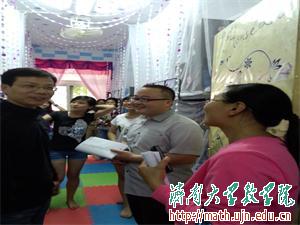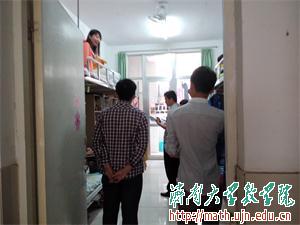 老师们从一楼开始用心地参观每一个宿舍,同学们也热情地向老师介绍自己的宿舍。在检查参观过程中老师们发现,同学们在现有条件下,充分发挥想象力和动手能力,经过精心的设计、布置,在宿舍增添了许多新鲜元素,使宿舍看起来更美观、温馨。比如学十四301宿舍贴在床头的励志标语,时时砥砺自己;学十四208宿舍自制的手工作品,挂在床头上别有一番风味。“数分虐我千百遍,我待数分如初恋”,幽默诙谐的标语体现了数学院学生对待数学的别样感情。宿舍的设计风格丰富多样,用品摆放也整洁有序。老师们还询问了同学们的生活情况,了解同学们在生活上的困难以及宿舍用品是否完整齐全,并耐心地解答了同学们的疑问。各位老师对同学们的宿舍赞不绝口,每一处小细节和小亮点都是大家的心血,同时老师们也对同学们提出一些建议,对大家进行鼓励,并与大家交流了自己在生活上的经验,希望大家能够在温馨、和谐和安全的宿舍中度过自己美好的大学生活。