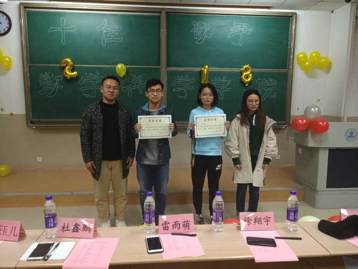 比赛在主持人的激情演讲下正式开始。比赛过程中,一首又一首动听而又优美的歌曲在教室内回响,随之而来的掌声也从未停歇,每位同学都在用心歌唱,用歌声来表达自己内心的情感,向观众传递着青春所独有的激情与魅力。观众都沉醉于美妙的音乐世界。最终,董睿同学和路广昌同学在此次比赛中获得了一等奖,郭云燕等同学获得二等奖,蔺佳昱等同学获得三等奖。颁奖仪式后,所有参赛选手与工作人员拍照留念,比赛在欢声笑语中落下帷幕。