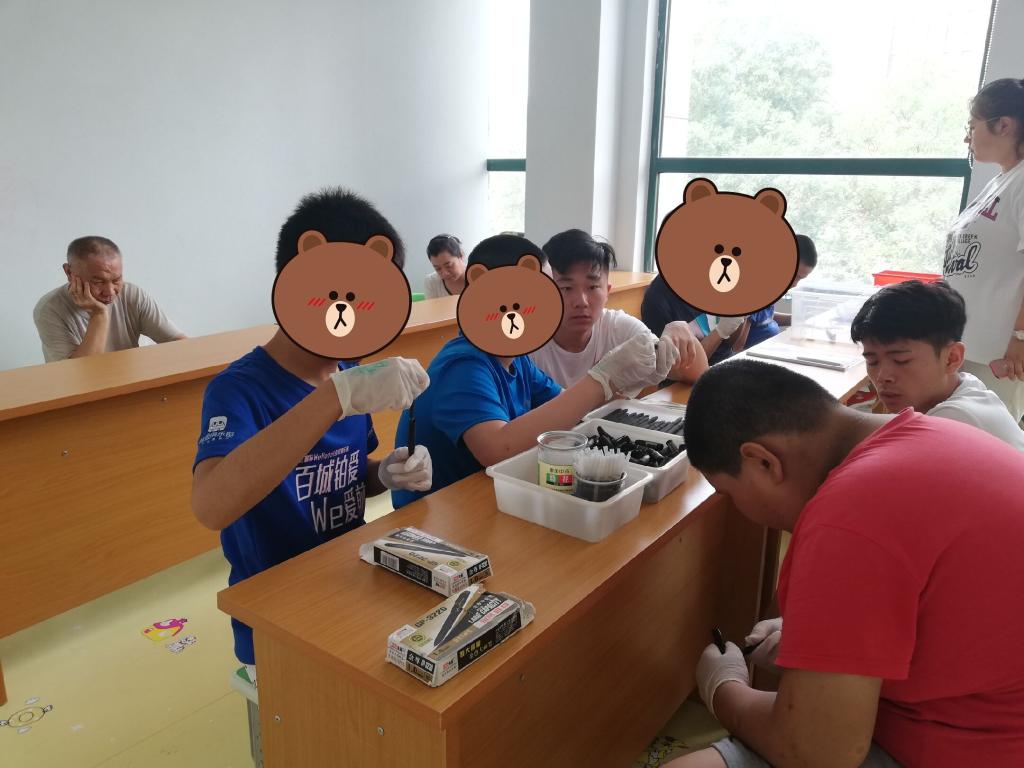 志愿者们刚到达不久,孩子们就开始做早操了。有了昨天的经验,今天志愿者们很快融入到孩子们中,孩子们再次见到志愿者,没有了昨天的陌生,热情的迎接志愿者们。志愿者们与孩子一起上了认知课、精细课、运动课、烘焙课还有美术课,尽管某些孩子能力较差,但志愿者们还是非常耐心的教他们、疏导他们,做老师的小助手。课后,志愿者们与孩子们一起做游戏,有套圈、名字蹲、拼图等,现场充满了欢声笑语,孩子们非常高兴。随后,志愿者们为孩子们打扫教室,希望孩子们能在这干净整洁的教室里变得越来越好。最后,志愿者们与老师、孩子们合影留念后,依依不舍的离开了。