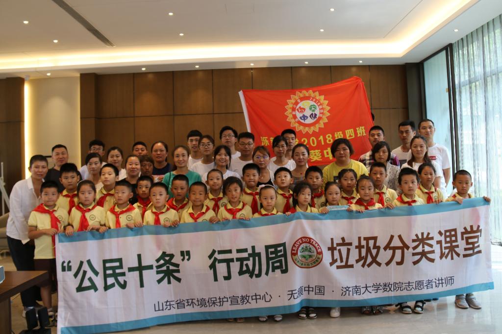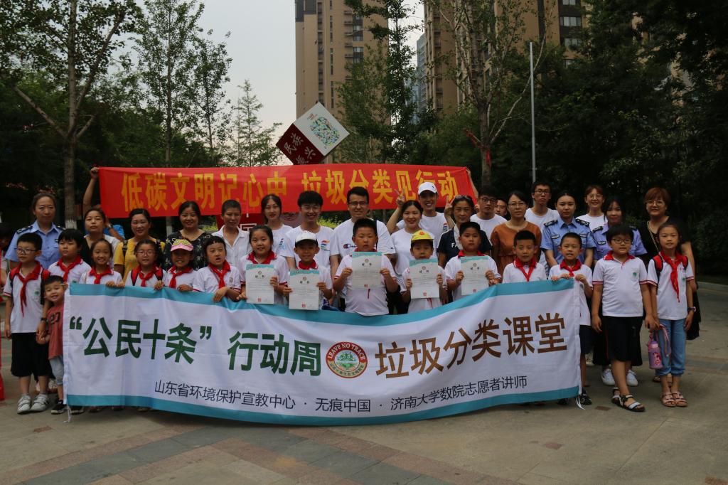 为促进人类与环境协调发展,提高人类生活质量,保护人类健康,在“无痕中国”团队的帮助下,allwincity万象城“无痕济南”暑期社会实践活动于7月20日在济南市泺新小学、济南市历城社区两个地方进行,17级辅导员吴立军也跟随志愿者来到历城社区,与小朋友们及家长共同参与本次《公民十条》垃圾分类课堂。