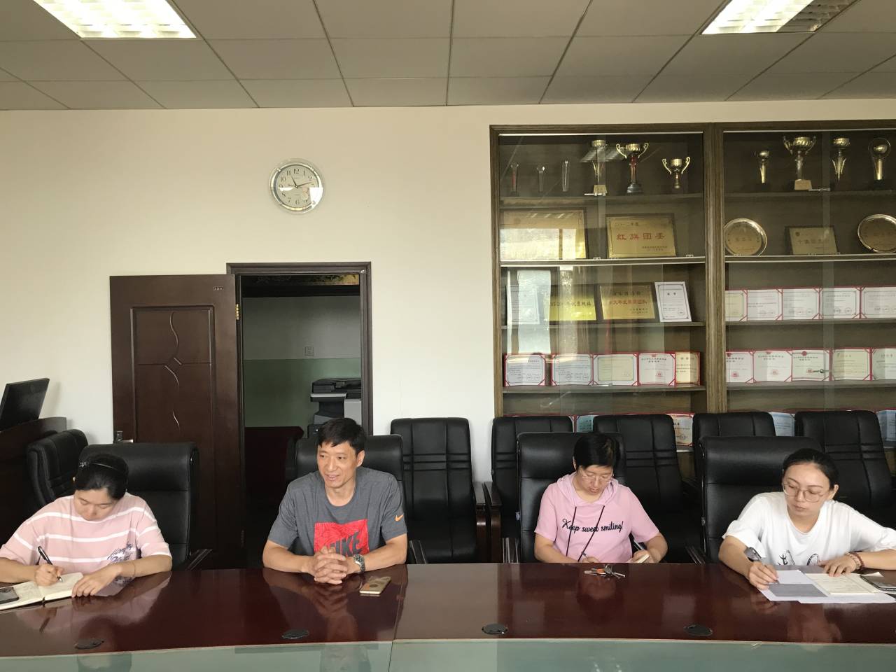 会议第一项,由新生辅导员房琳琳对新生报到工作任务进行进一步的详细解说,说明相关注意事项,并对各项迎新任务进行分配。随后2019级班主任助理分别汇报迎新工作进展和现存问题,老师们认真分析问题并提出解决方案。最后,孟德洋书记总结到,班主任助理代表了学院的形象,应该以身作则,维护好学院的优良风尚,同时希望新生与班主任助理之间多沟通、多交流,班主任助理对班级事务及时处理,让新生能够顺利开启大学生活。