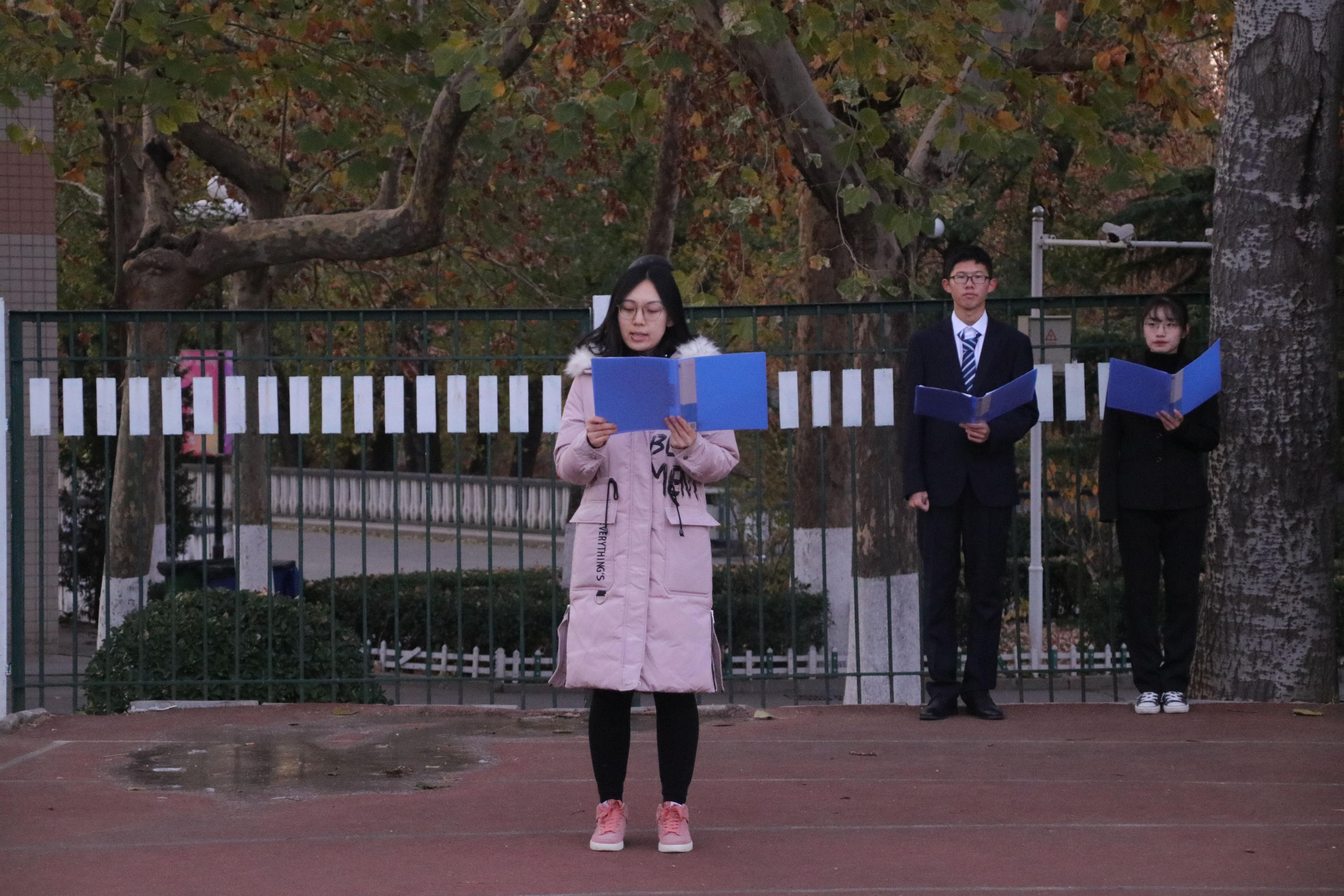 早上6:40,全体人员集合完毕,准备迎接这一神圣而庄严的时刻。随着主持人宣布升旗仪式正式开始,国旗班升旗手们迈着坚实而又整齐的步伐出旗。国歌奏响,国旗手将国旗抛起,同时全体人员奏唱国歌、行注目礼,国旗伴随着国歌冉冉升起。随后,新生代表赵家伟以“我与祖国共奋进”为主题发言,呼吁新生们要“秉承前辈奋斗之精神,以饱满的精神姿态面对成长道路上的困难”,志存高远,意志坚强,敢于有梦、勇于追梦、勤于圆梦,把人生志向融入国家和民族的大事中。之后,新生辅导员房琳琳发言,教诲学生要注重科技的发展、认识自我、坚持奋斗、努力追逐梦想,鼓励同学们在人生前进的道路上勇于创新,“担负时代使命,推动国家发展”。最后,房老师鼓励全体新生要在实现中国梦的道路上拼搏奋进,在激情奋斗中绽放青春的光芒。