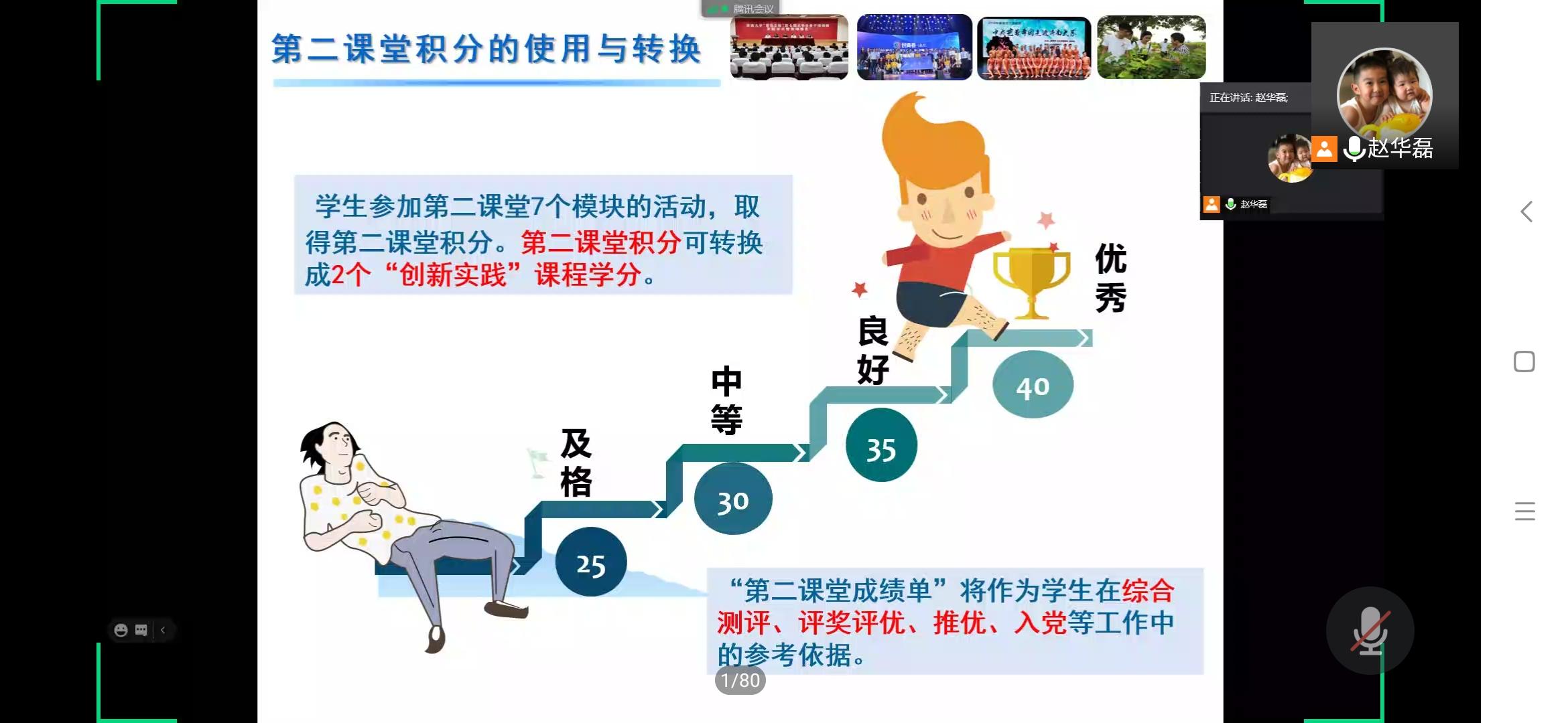 为了让2020级新生更好的了解大学生活,了解大学第二课堂分数制度。9月27日下午,allwincity万象城在线上对学生的第二课堂进行了讲座,本次会议由团委书记赵华磊主讲。