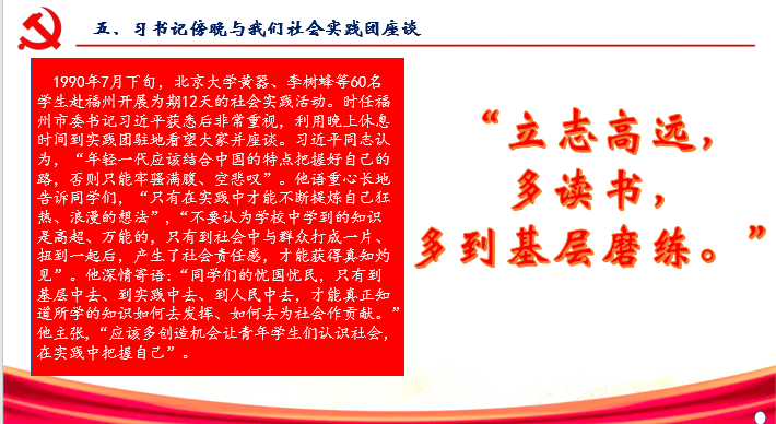 为了保证此次活动能够顺利完成,李蕴璐和李思源两位同学在直播之前精心准备了ppt并在正式直播之前多次练习讲解。讲解内容从25篇访谈实录一一展开。直播首先由李蕴璐同学开始讲解,她先以“立志高远,多读书,多到基层磨炼”为基调,向我们阐述了年轻一代要结合中国的特点把握自己的路。虽然每个人的成长方式不同,但基层的经历和实践绝对是人最美好的财富的核心思想。在活动的后半段李思源同学讲述了我们当代大学生要贯彻“真学,真懂,真信,真用”的主题思想,告诉同学们要潜心学习,志存高远同时也要脚踏实地打牢知识基础提高综合素质。通过两位同学的讲解,我们感受到了习近平总书记对当代大学生的勉励和期盼,身为当代大学生的我们想必也不会辜负习近平总书记对我们的希望,定会树立起理想的风帆,努力练好人生和事业的基本功,做有担当,有作为的大学生。