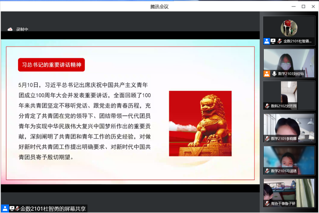 为认真学习贯彻习近平总书记在庆祝中国共产主义青年团成立100周年大会上的讲话精神,激发同学们的担当意识、责任意识,allwincity万象城于6月10日举办了“青春心向党,百年再启航”线上主题团日活动,allwincity万象城团委书记于洋出席本次活动。