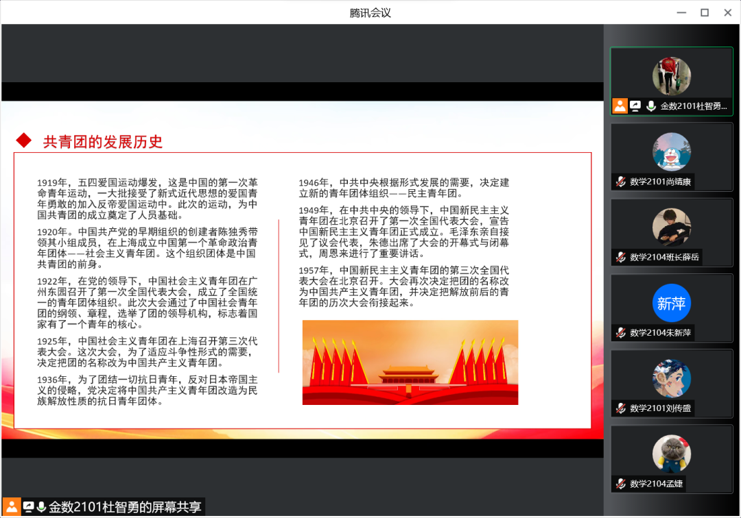 会上首先由各团支部团支书依次就本团支部工作进行汇报,主要包括了班级建设、活动开展和班级学风建设等内容。随后大家分享心得体会、交流工作经验、畅谈工作计划。杜智勇同学谈到如何提高同学们参与团支部活动积极性时表示:“我们在与同学交流时应注意方式方法,多换位思考。更多的付出,更多的接纳与帮助,用包容的态度对待工作和工作中出现的问题。”大家纷纷表示赞同。会议最后,数学2104班班长薛岳呼吁大家及时与同学们沟通,多了解同学们的需求和意愿,让团支部的工作更有活力。