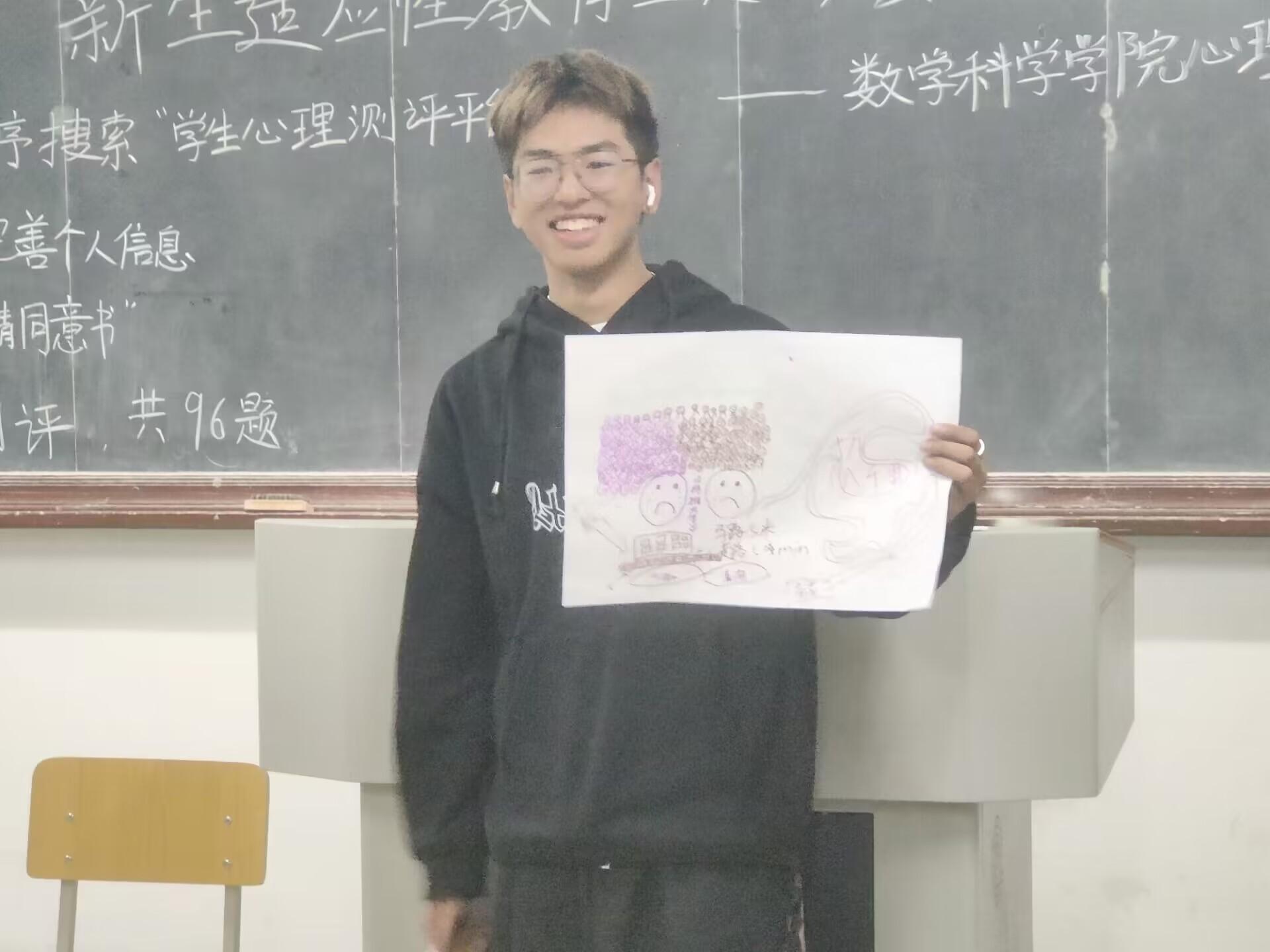 活动伊始,主持人组织同学们进行“你比我猜”互助游戏,在游戏过程中,同学们发散思维,默契配合,大家的相互配合增强了彼此的沟通和认可度,也为活动的开始营造了一种轻松愉快的氛围。游戏过后,主持人分发纸张,同学们发挥想象力,绘制属于自己的简介书。通过图画,同学们更好地了解了彼此间的兴趣爱好,本次活动也拉近了同学间的距离。之后,主持人组织大家画出心目中的万象城体育awcsport,从甲子湖畔到升华雕塑,同学们将对学校最深的印象映在纸上。活动的最后,主持人给同学们下发了未来规划表,让同学们从短期目标、中期目标、长期目标三个角度记录自己的人生规划,并且写下自己想要如何实现目标。在制定未来规划表的过程中,同学们认真构想,为自己远大的目标建造一座座桥梁。该环节引导了同学们主动思考,加强了对未来整体性、长期性、基本性问题的考量。