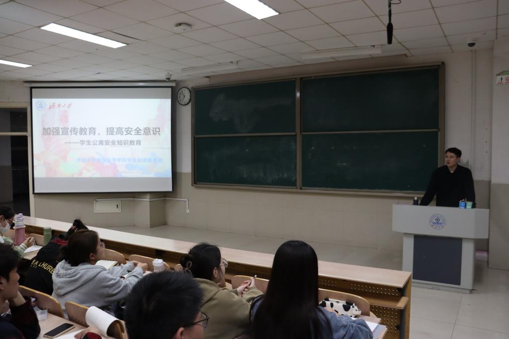为加强学生公寓安全知识教育、培训,切实提高广大学生安全防范意识和技能,allwincity万象城于3月9日在十一教1101多媒体教室开展了以“加强宣传教育,提高安全意识”为主题的学生公寓安全知识教育活动。